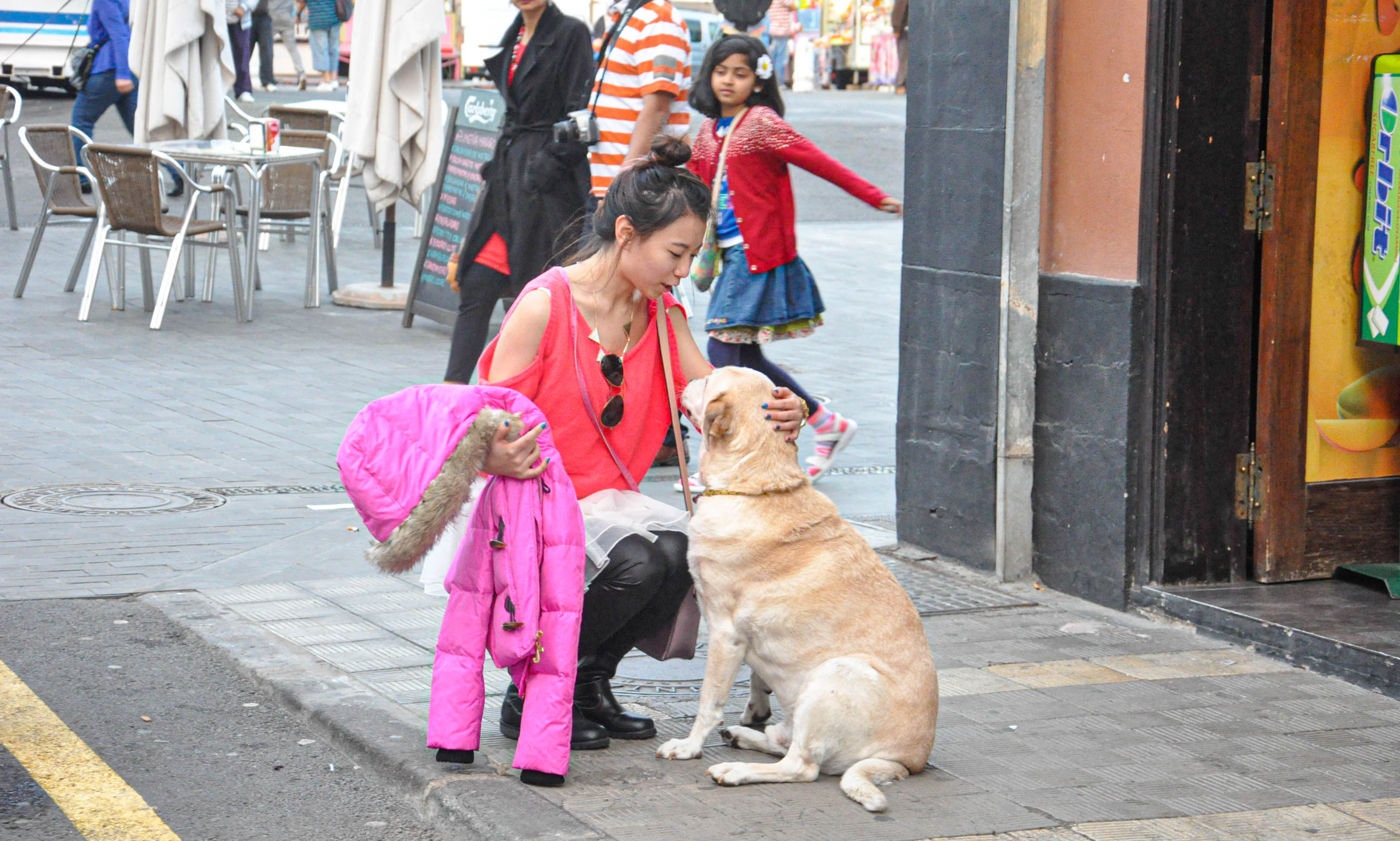 离开娱乐嘉年华后路过一家小酒吧,一只听话的狗狗坐在酒吧的门口等着它的主人,它的主人在里面喝着咖啡和别人聊天。丸子不由自主的摸了摸它,真的好可爱,好听话!
