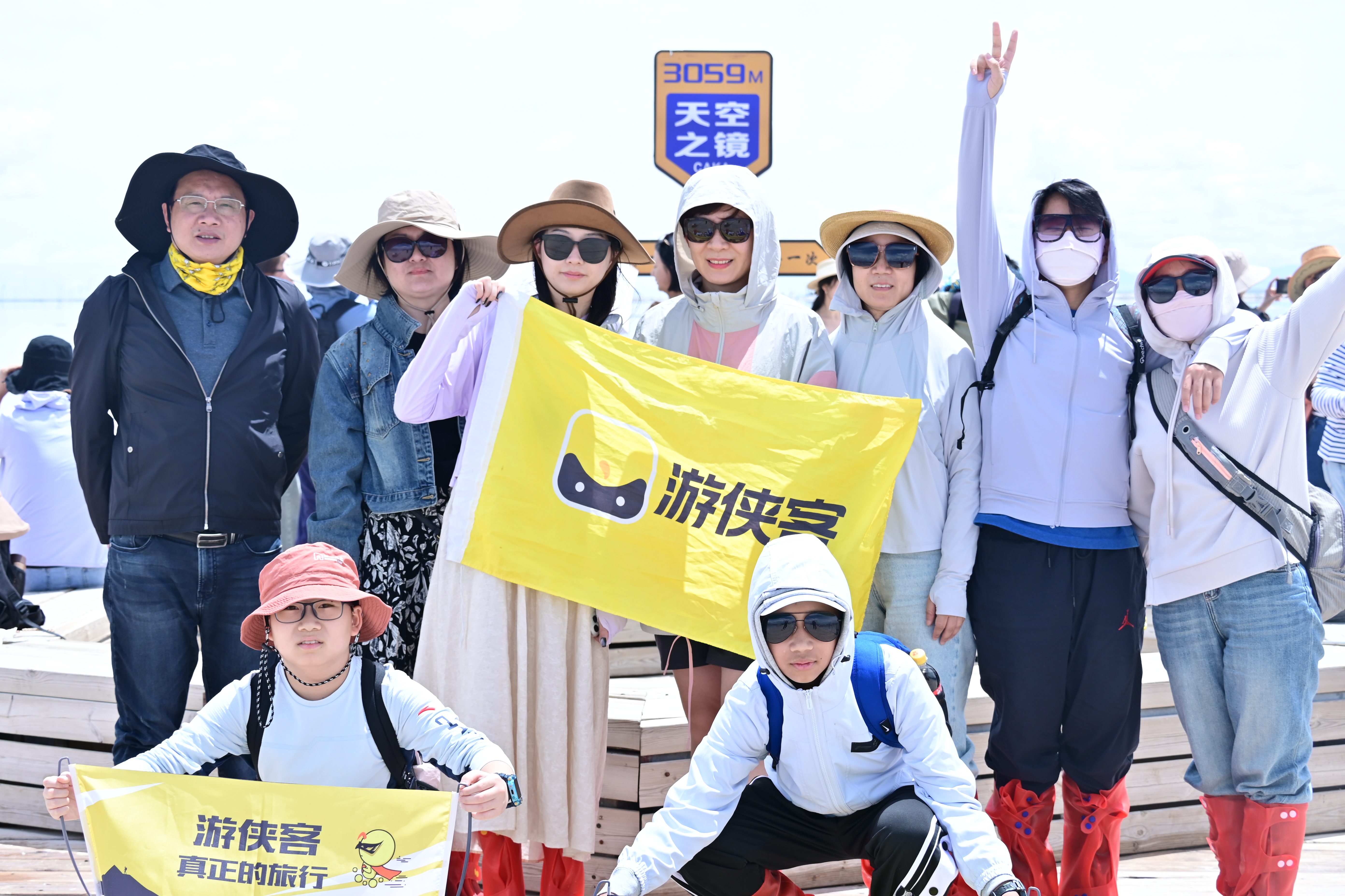 茶卡盐湖湖面面积105平方千米,辽阔空旷、地势平坦,再加上盐湖结晶盐层上卤水的反射,形成“水映天、天接地、人在湖间走,宛如画中游”的景观。