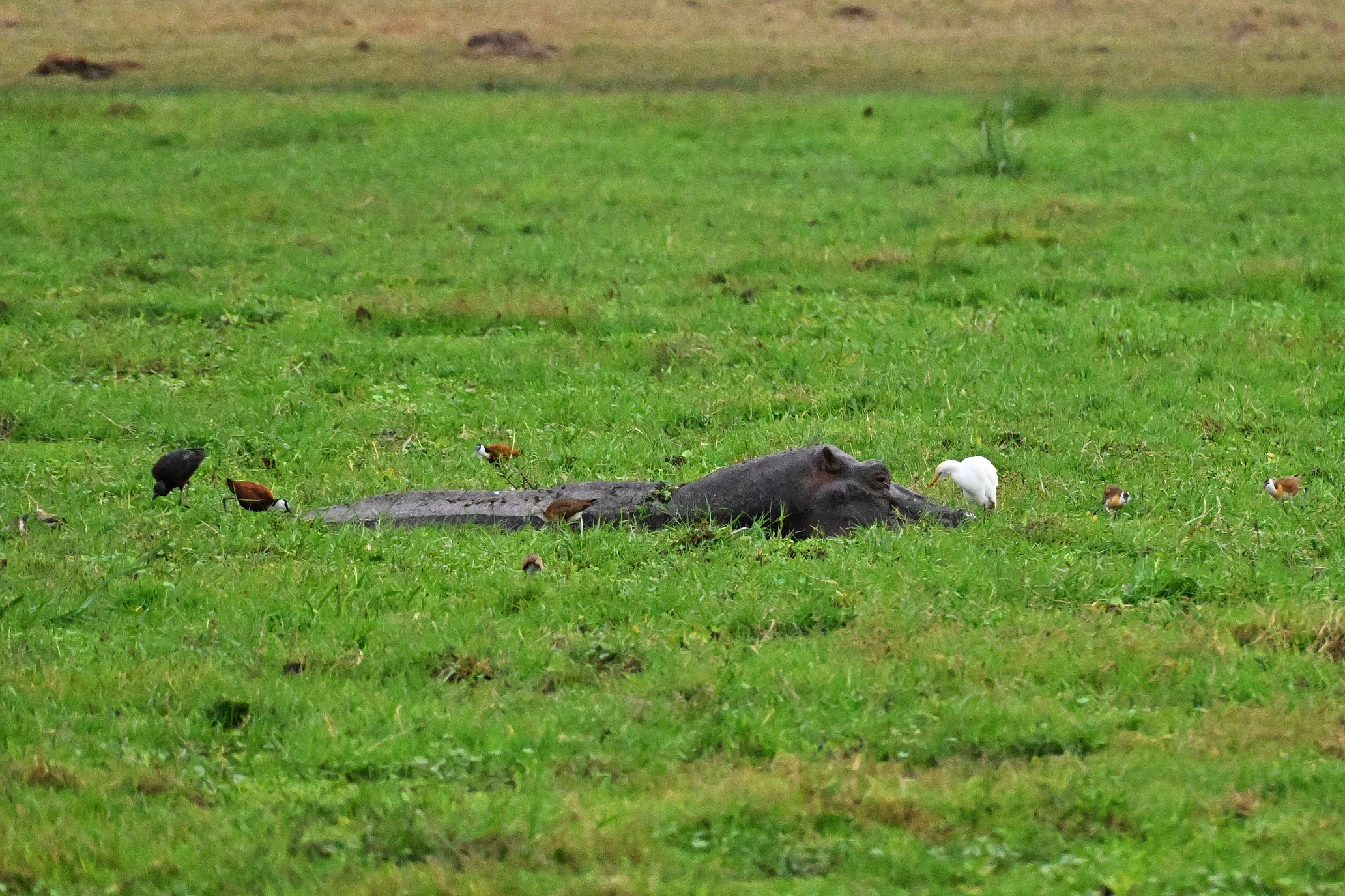 小鸟们在帮河马清除表皮上的寄生虫,河马一副享受的样子。