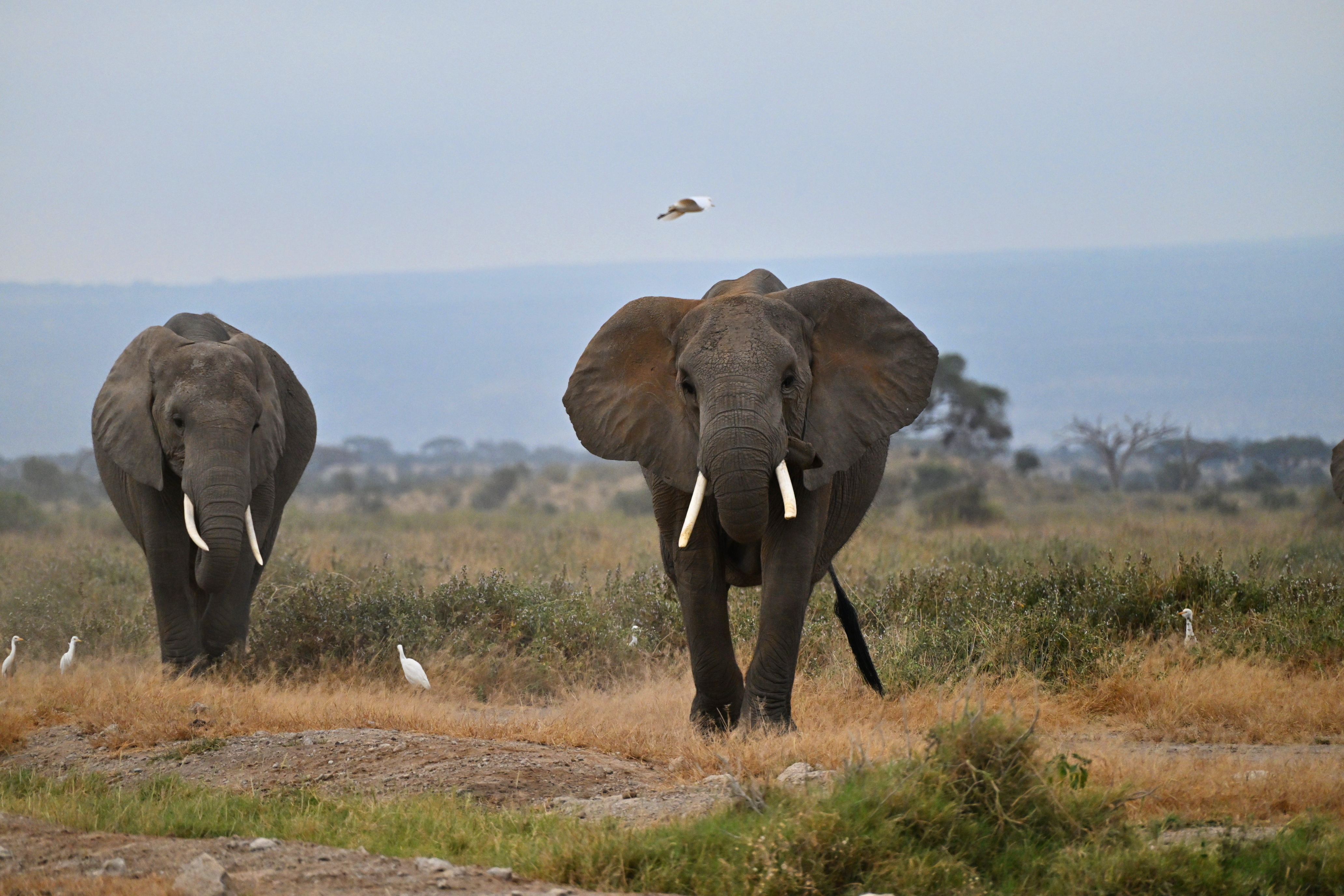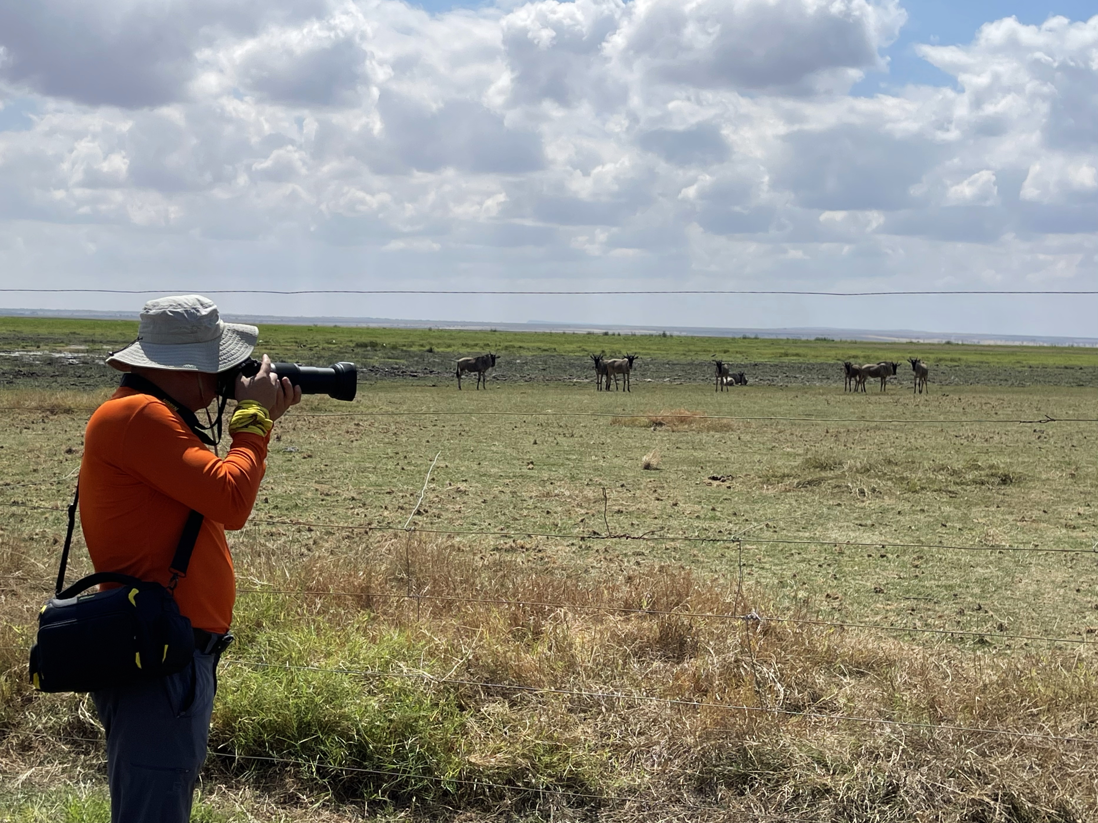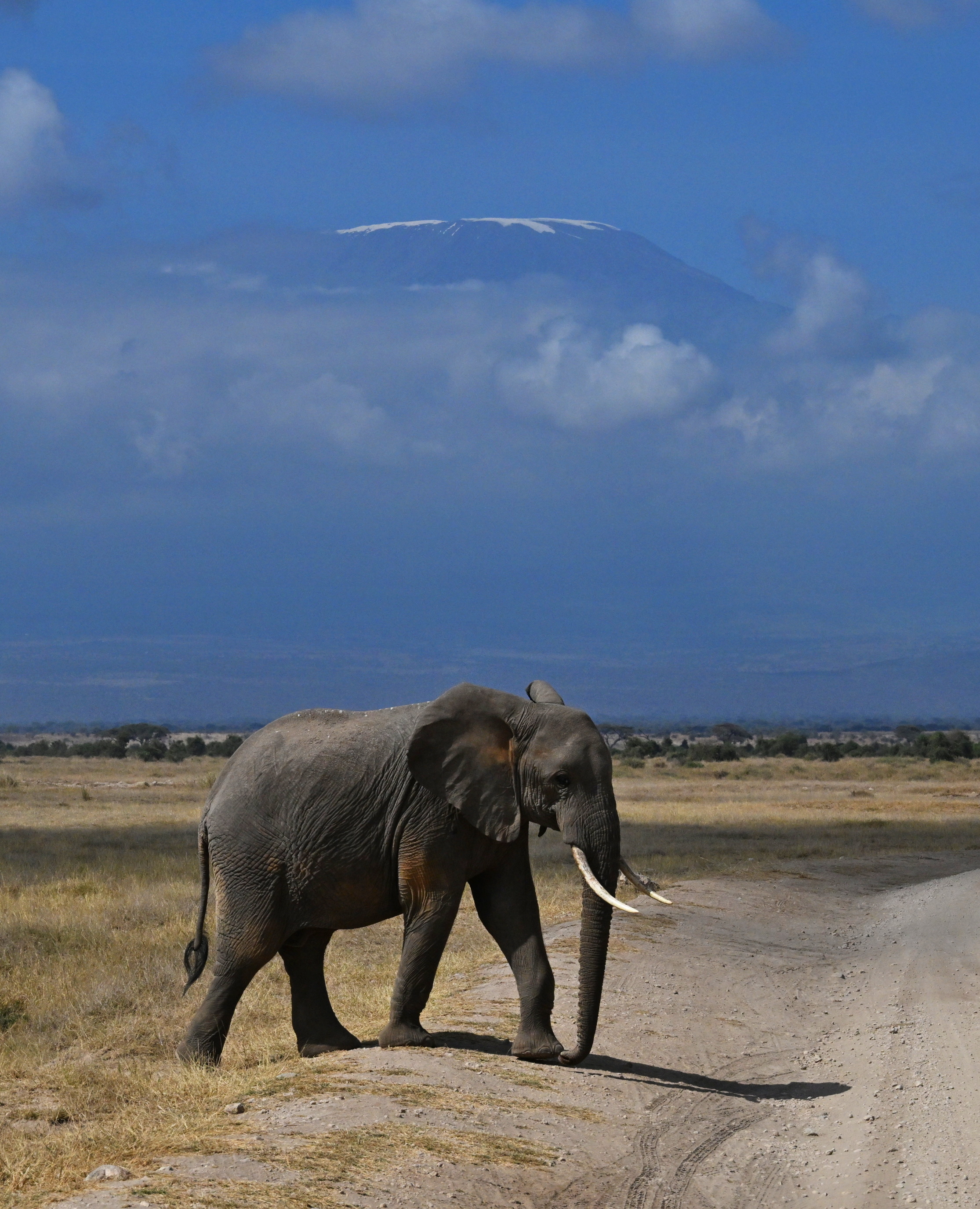 8月3日,我们一早出发去安博赛利国家公园(Amboseli Park)。安博塞利国家公园位于肯尼亚与坦桑尼亚交界地区的肯尼亚边境,在这里可以清晰地看到海拔5895米的非洲第一高峰乞力马扎罗山。接近赤道的乞力马扎罗山顶终年覆盖着积雪,山下莽原景色优美。公园面积392平方公里,各种动物数量巨大,其中大象是那里公认的明星。领队介绍,园内有38个大象家庭,近1500头大象。