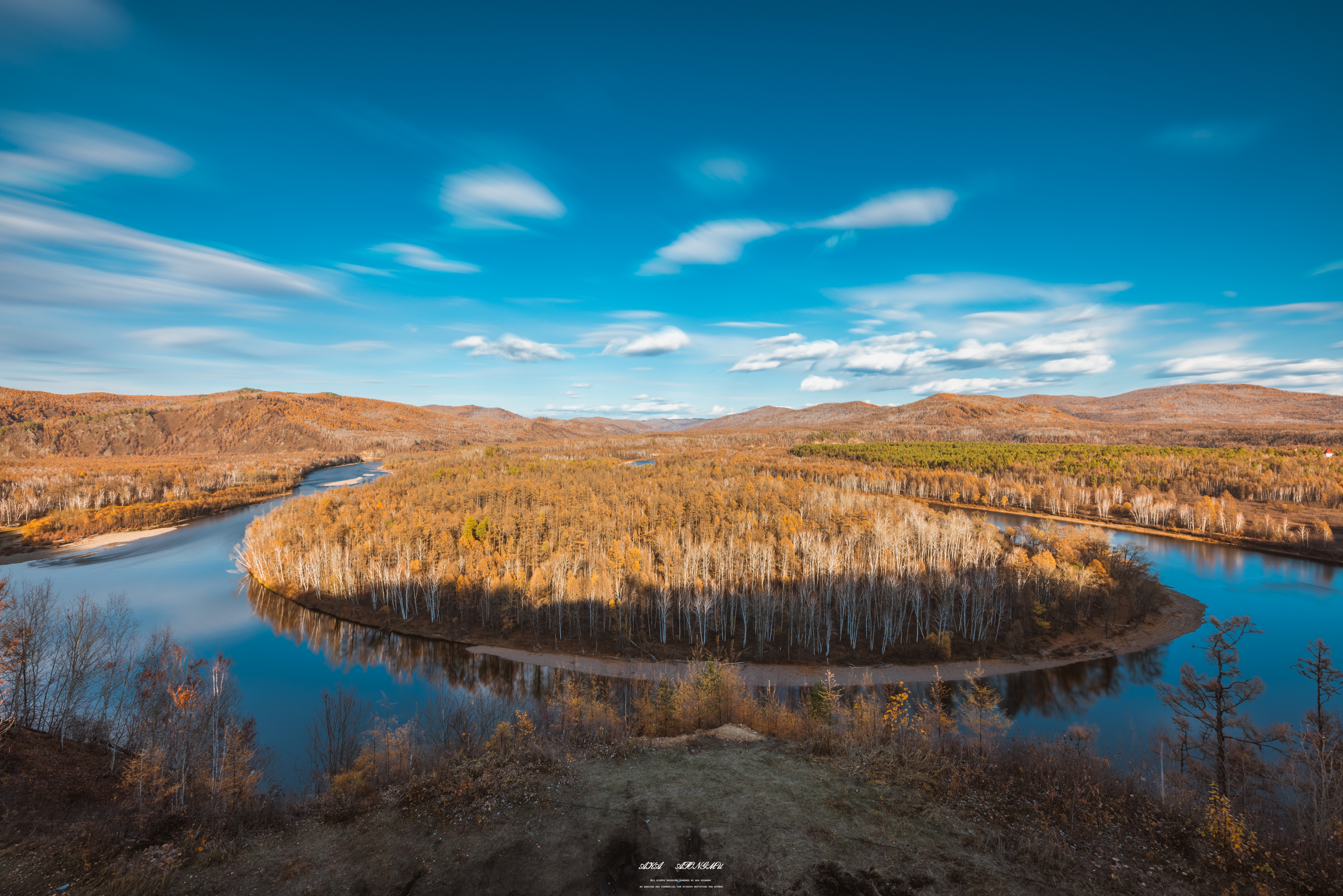 河流、湿地与湖泊与森林为伴, 满眼景色变得愈发丰富, 驾车从 阿尔山 一路向北,满眼都是饱和度溢出的金色