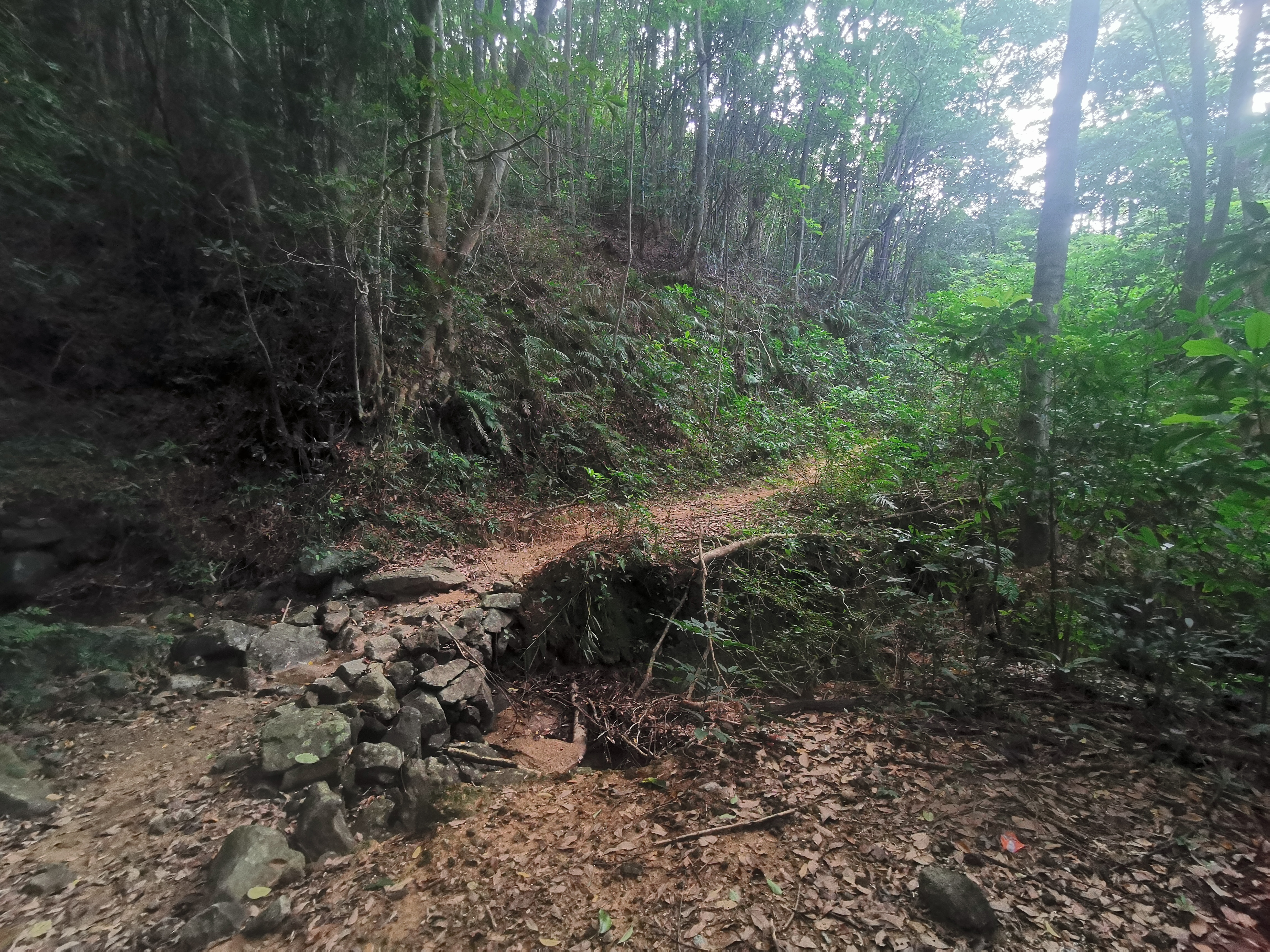 从化十登之老虎头之一🌸徒步过程:🌿前面几公里是水泥路+机耕路,虽然不陡,但三十几度高温下连续爬升还是挺累的。到了上山路口有个比较开阔平坦的地方可以休息,在这里千万不要走错了,上山是往左边的小路爬升的,有个蓝色牌子写着“上山路口”几个字。🌿上山路口上去就是一段又长又陡的急升坡,按照自己的节奏慢慢走,累了就停下来喘口气。到了坡顶休息、吃路餐。