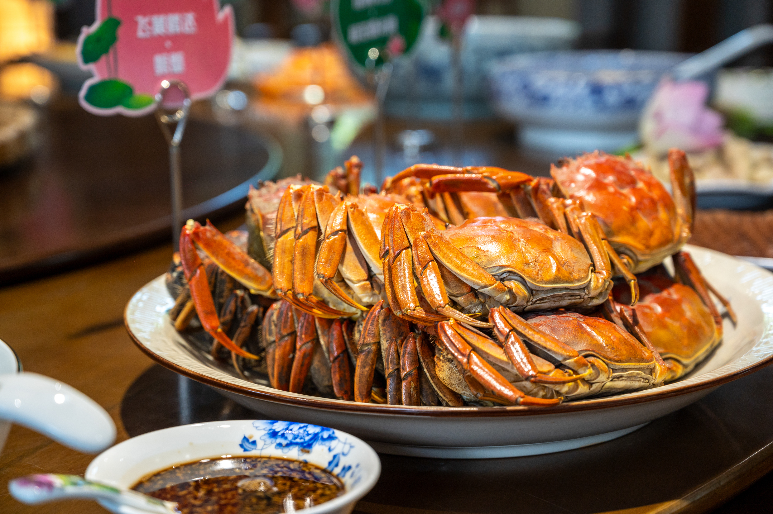 从菜肴的名字间也不难发现,这是一桌主要以“荷花”为主题的宴席,每一道菜肴的名字也非常好听,比如螃蟹取名“飞黄腾达”,红烧桂鱼取名“年年有余”,荷塘小炒取名“百年好合”,荷花酥取名“花开富贵”,开胃甜汤取名“多子多福”,炸藕夹取名“团团圆圆”,金湖双黄蛋取名“好事成双”等等。