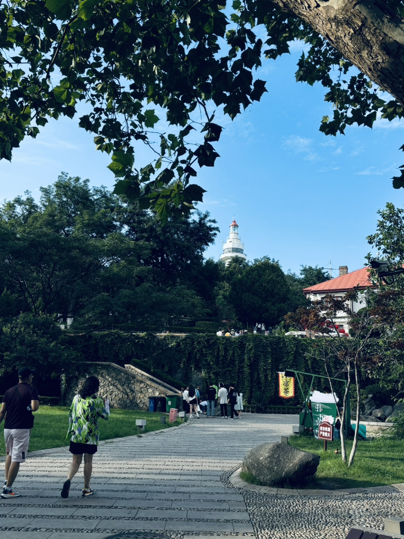 来烟台必打卡烟台山,有山有海有灯塔,人文历史,吃喝逛的好地方。一路沿着热闹的朝阳街走入烟台山公园,里面绿植郁郁葱葱,可以一路走访各国领馆遗址,还有冰心纪念馆哦,没多久就来到灯塔啦,10元门票可以坐电梯上灯塔眺望,还是值得上去的,风景一览无余,看到远处的沙滩,扬帆起航的帆船⛵️ 很幸运还看到彩虹🌈 下来之后偶遇几只黏人🐱星人,可可爱爱。