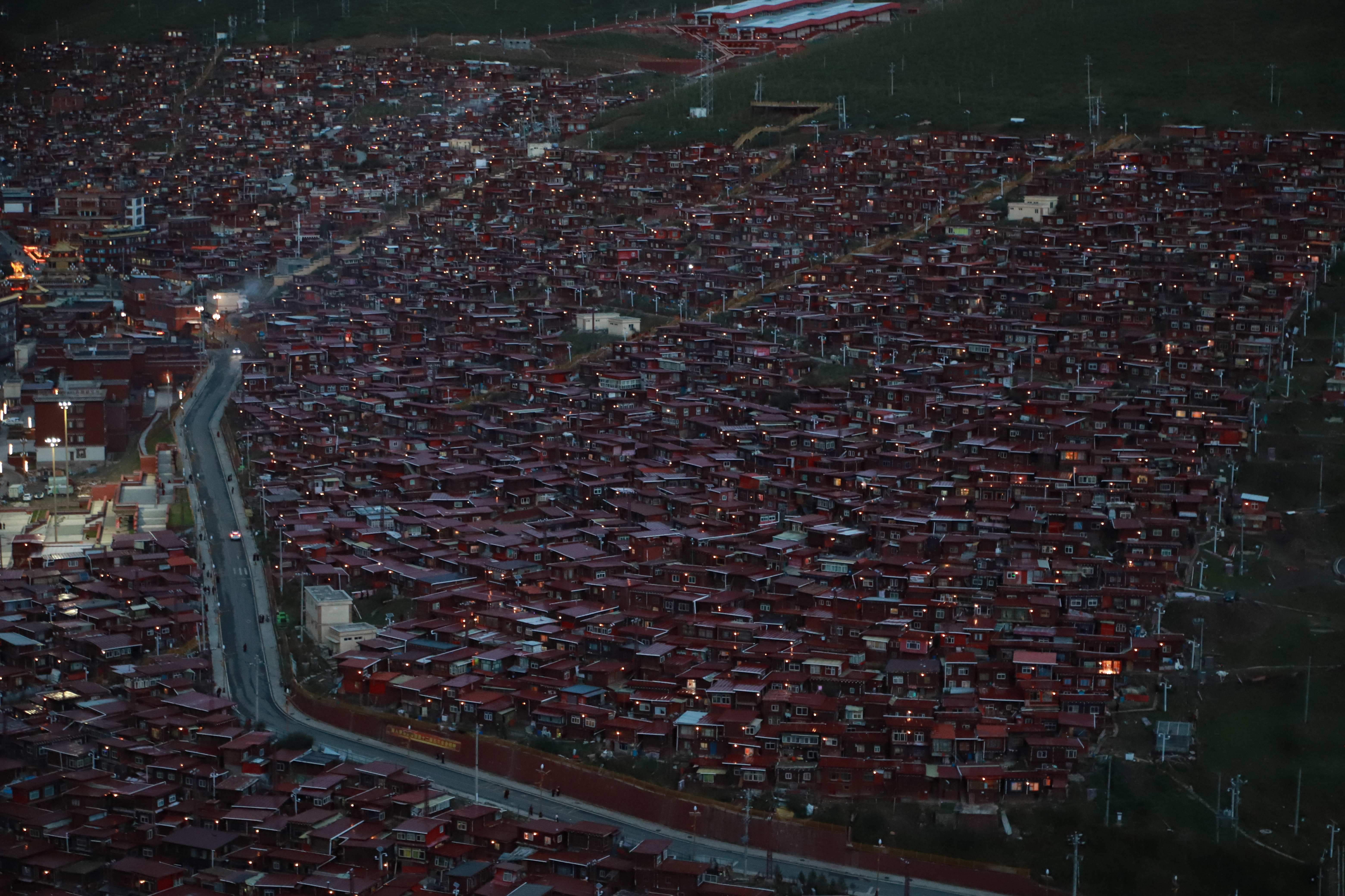 标志性景观:连绵数公里、密密麻麻的红色小木屋,依山而建,层层叠叠,错落有致,形成了一道独特的风景线。这些红房子最初是由早期的修行者在山地上自行搭建的木质棚屋,之后被统一涂成红色,象征着神圣与吉祥。