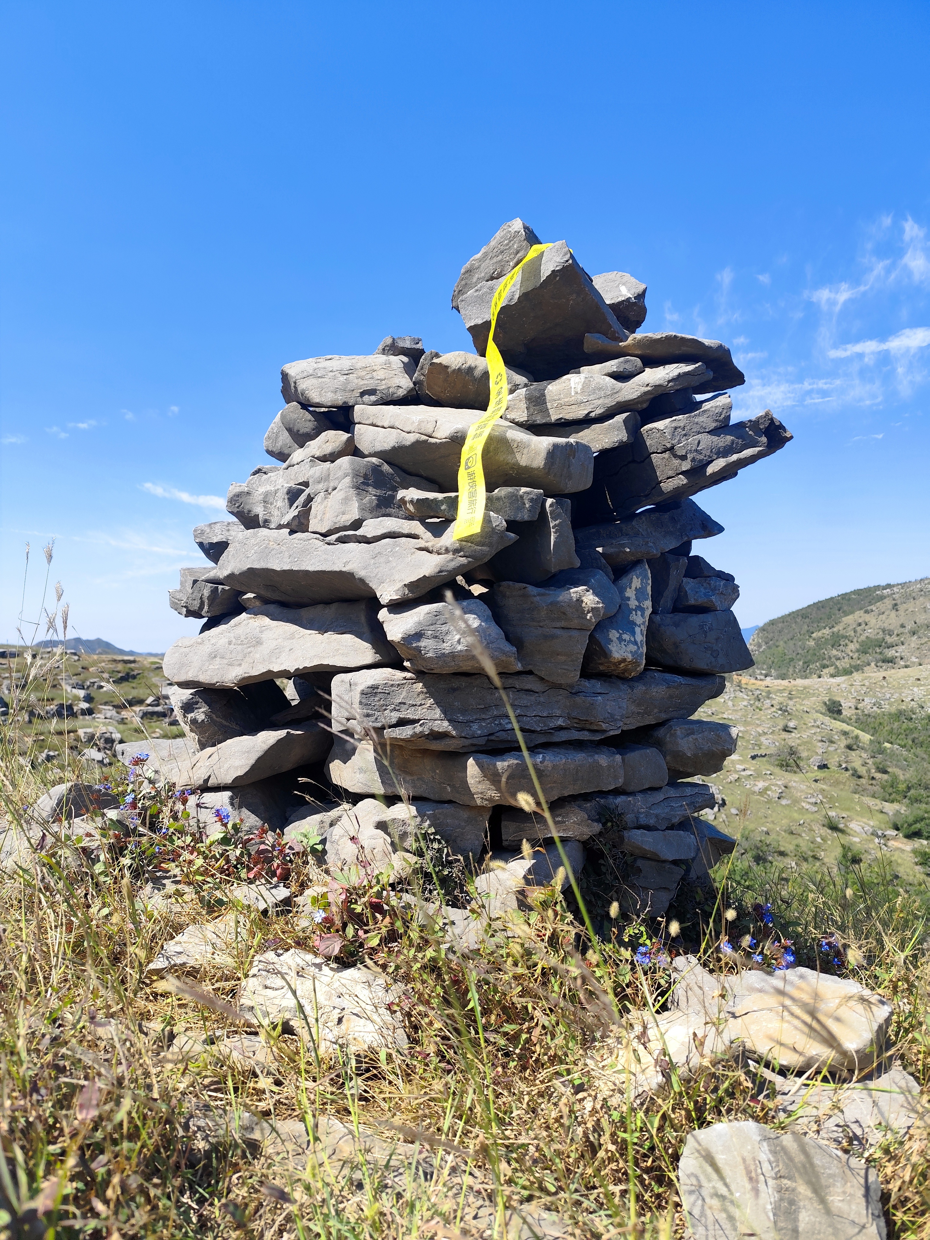 📸 走过朝阳寺,沿着饮马坑。一路向上,你可以欣赏到古灵山草原的壮丽景色。丝茅草随风摇曳,如同麦浪一般,给人一种宁静而治愈的感觉。远处的马匹和羔羊在安静地吃草,为这片自然景色增添了几分生动。