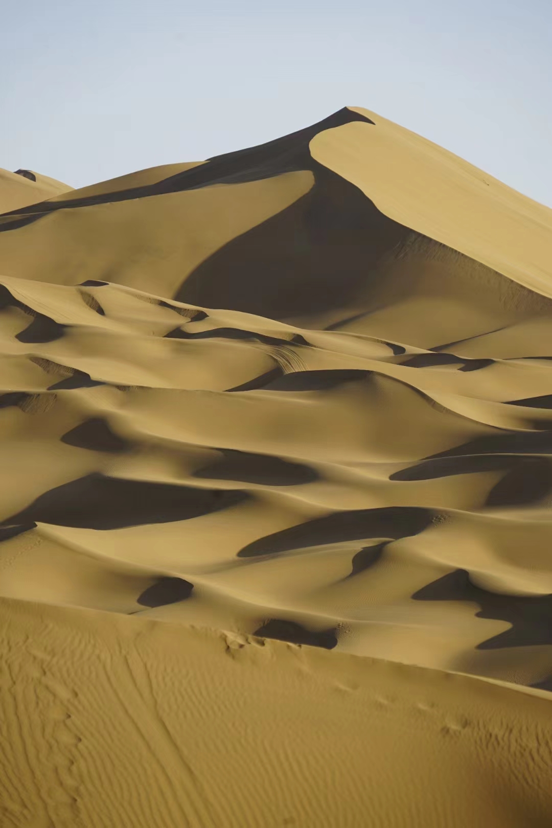 库木塔格沙漠位于鄯善县以南,是塔克拉玛干沙漠的一部分。主要组成元素不是沙丘,而是沙山,金色的大漠雄浑壮观,千百年来沙不进,绿不退。