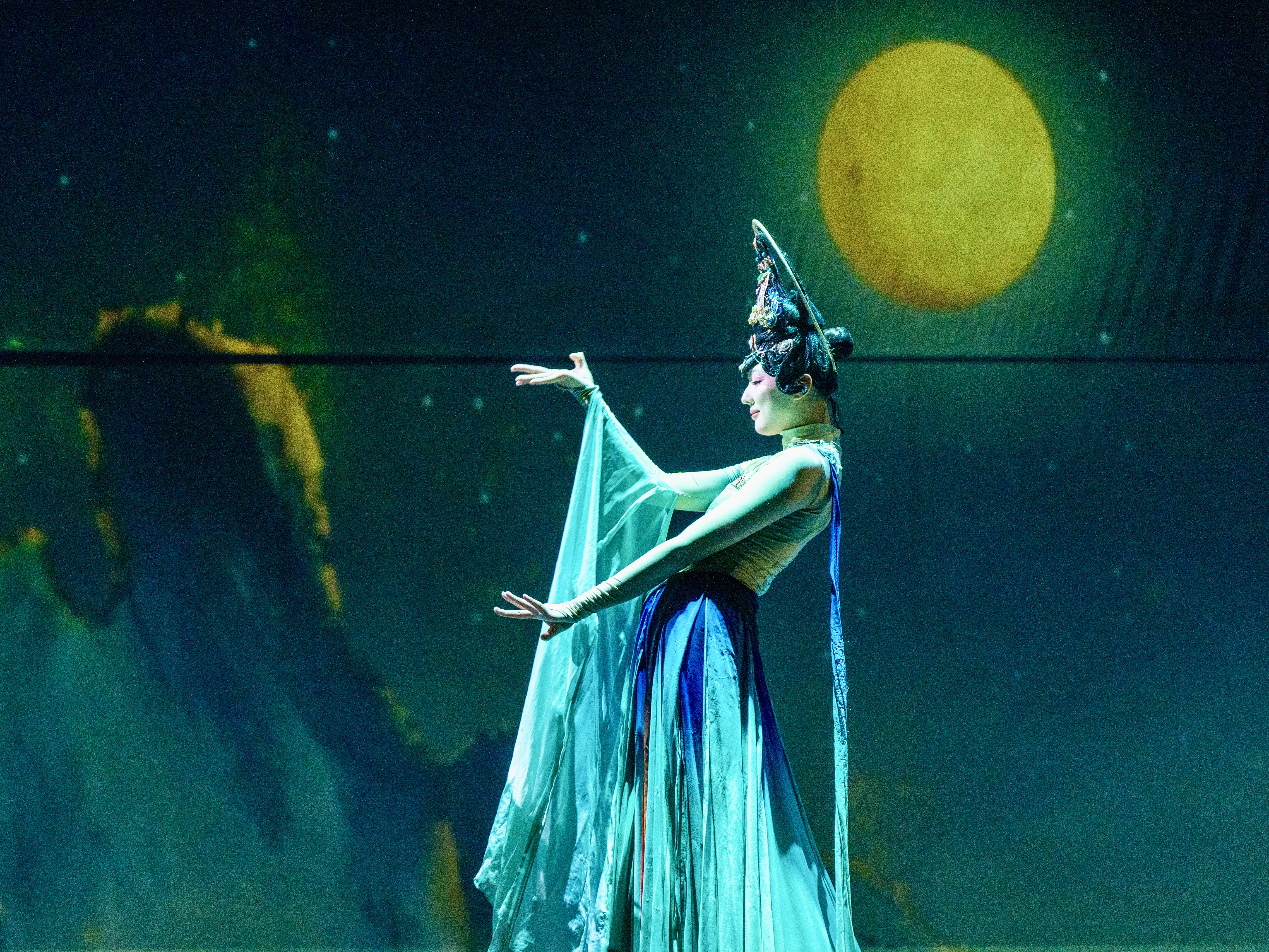 第二幕中,仙气飘飘的“洛神”从天而降,扮相和舞姿都令人印象深刻。而第三幕,再现了龙门石窟的卢舍那大佛,气势恢宏!