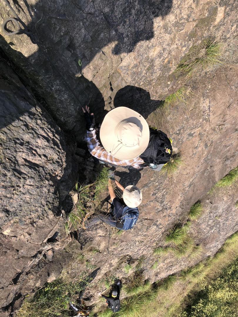 我们借助绳子,手脚并用开始攀爬。每一步的向上攀登,都是对自我的一次超越。双手紧紧抓住绳子,感受着那股坚实的力量,双脚稳稳地踩在岩石上,寻找着最佳的着力点。在攀爬的过程中,我们互相鼓励、互相扶持,团队的凝聚力在这一刻展现得淋漓尽致。
