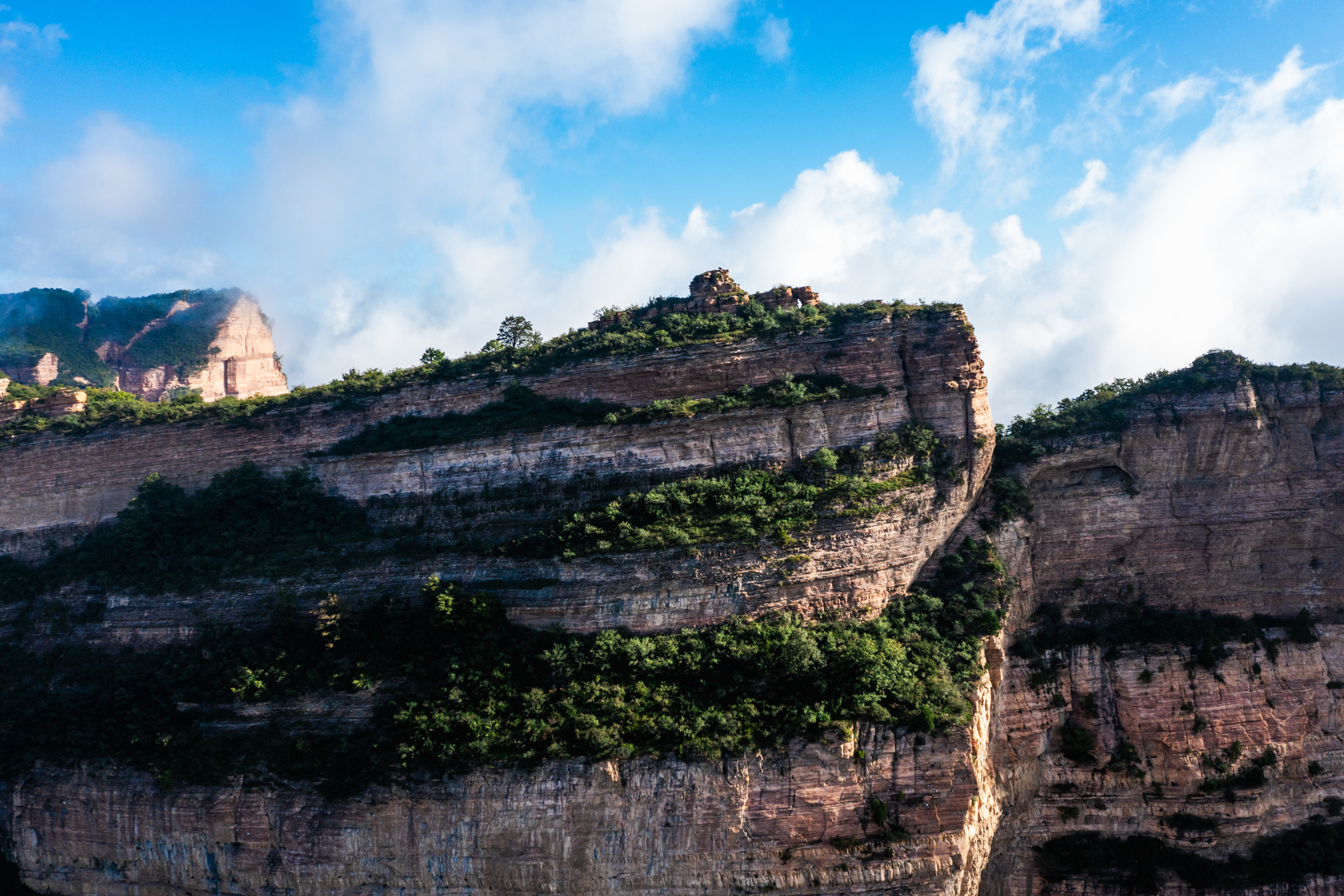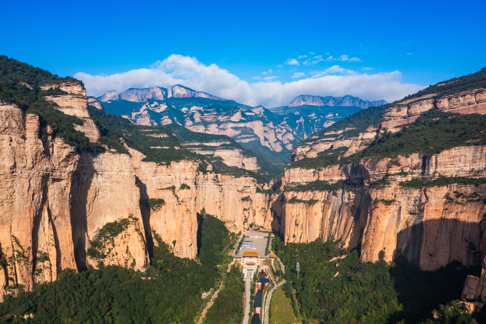 八百里巍巍太行,千沟万壑、层峦叠嶂。镶嵌在山西黎城县太行山脉中部的黄崖洞,是被太行山怀抱着的一颗璀璨明珠。这里地势险峻,海拔多在1500~2000米之间,地壳相对运动产生的巨大能量,将硬红石英砂岩、页岩层组成的山岳切割出一道道峡谷,峭壁连绵数十公里,拔地而起,直冲云霄。