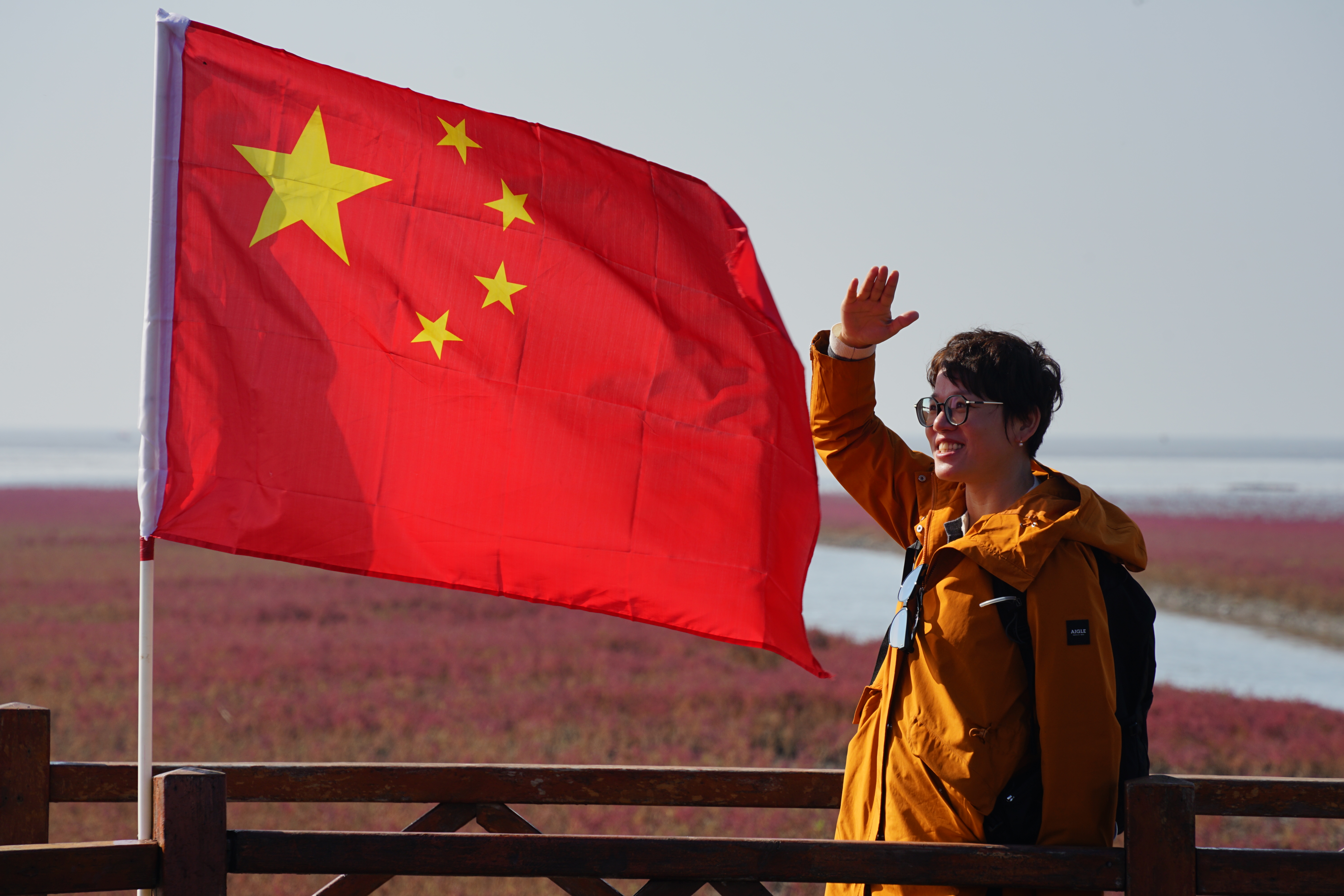 最后一天的行程就是红海滩啦,我们也很幸运的看到了。它是因为一种植物,碱蓬草,呈现出红色。