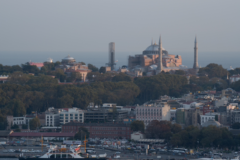 圣索菲亚大教堂(Hagia Sophia)于公元6世纪拜占庭皇帝查士丁尼一世所建,查士丁尼本人的肖像亦成为教堂中最著名的镶嵌画之一。后来的历任拜占庭君主也都在此加冕。马赛克镶嵌画的斑驳,承载着世间少有的宗教演变和融合。曾经的基督堂,后来的清真寺,如今的博物馆,幸运没有经历破坏性的浩劫。