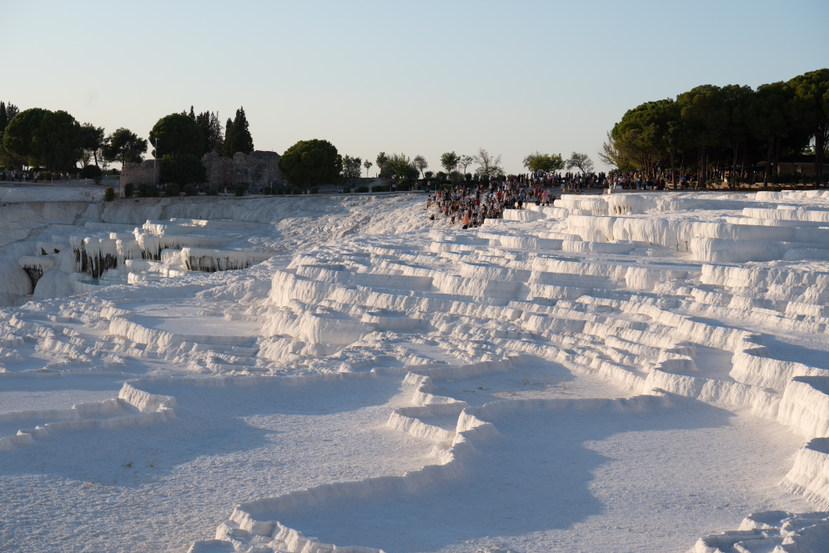 棉花堡位于代尼兹利(Denizli)市北部,是有名的温泉度假胜地。土耳其语“Pamuk”意为棉花,“Kale”意为城堡,Pamukkale就被称为棉花堡。当地政府规定游客必须赤脚进入,以防鞋底磨损棉花堡的石灰岩。
