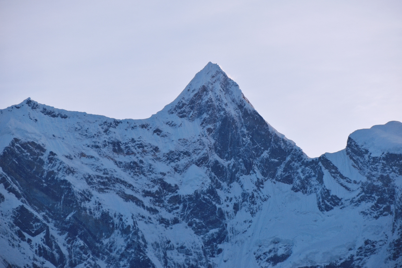 早上爬上天台看日出,大家在天台拍人物与南迦巴瓦的合影。后来,另外一个团的2个小姐姐说在一个地方可以拍到南迦巴瓦和整个大峡谷,我们立马飞奔过去。