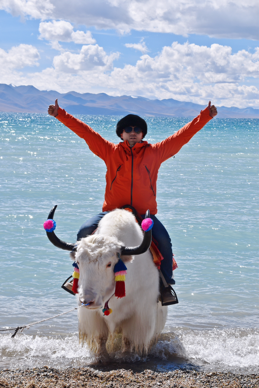 西藏到纳木错差不多要4个小时,游玩4小时,返程4小时,就刚好12小时再次回到拉萨。我们在当雄吃的午饭,然后去垭口挂经幡祈福,再下到山下景区门口。坐景交车到湖边,拍白牦牛、念青唐古拉山、湛蓝湖水。纳木错湖边海拔高,4238米,最适合干的事情除了拍照就是坐在湖边发呆,喂喂红嘴鸥,然后对湖思过,看看能否见到自己的前世今生。(据说西藏的喇嘛都会在各大圣湖寻找自己的前世,并且查看活佛转世的部分信息)。