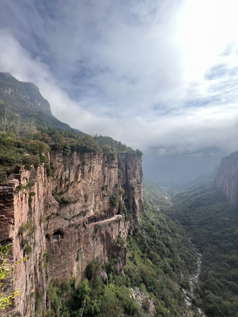 来到了著名的郭亮洞。这条人工开凿的挂壁公路,堪称世界奇迹。站在洞口,望着那蜿蜒曲折的通道,心中充满了对先辈们的敬佩之情。走进郭亮洞,洞内光线昏暗,洞壁上的岩石形态各异。可以想象,当年村民们在如此艰苦的条件下,一锤一凿地开出这条生命之路,付出了多少汗水与艰辛。从郭亮洞向外望去,是壮丽的太行峡谷景色,山峦起伏,云雾缭绕,美不胜收。