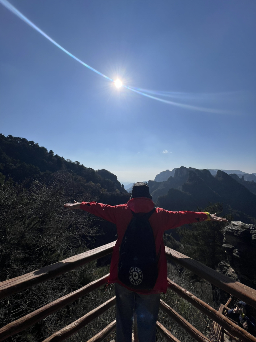 进入万仙山景区后,一路的景色已经让我对丹分沟愈发期待。沿着蜿蜒的山路前行,不多时便来到了丹分沟的入口。刚踏入沟内,我便被眼前的景象所震撼,两侧是高耸的红岩绝壁,仿佛是大自然用巨斧劈开一般,笔直地矗立在那里,阳光只能从狭窄的缝隙中投射进来,给整个峡谷增添了一份神秘的色彩。