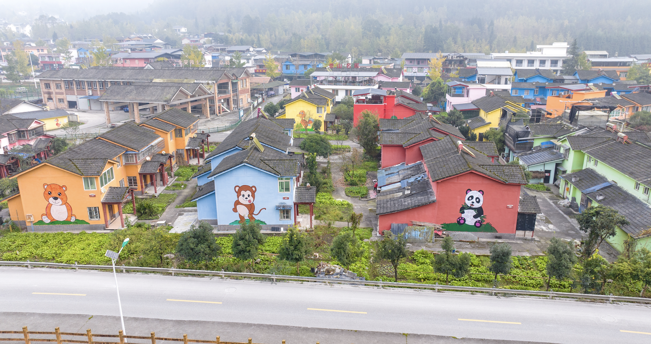 除了这些打卡物,金色清平里面的建筑也特别童趣,楼栋是彩色的,一幢接着一幢给人大大的视觉冲击。墙面上绘制着各种小动物,是民居,也是一道道风景。