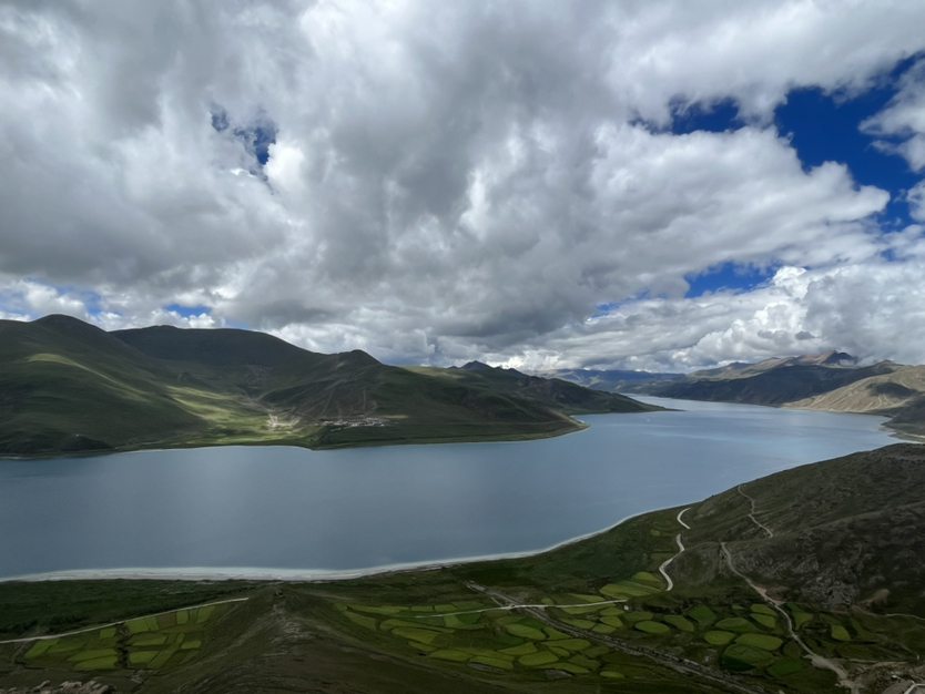 羊卓雍措,藏语的天鹅湖“天上的仙境,人间的羊卓。天上的繁星,湖畔的牛羊。”西藏流传着这么一句话,西藏没有海,但却收集了世间所有的蓝,而羊湖就是高原上洒落人间的一颗蓝宝石可惜你不来西藏,我便为你在海拔 4441米的羊卓雍措湖畔堆了一个玛尼堆,风吹过一次便是我为你祈福一次。希望大家在新的一年里开开心心快快乐乐平平安安,心想事成,扎西德勒!