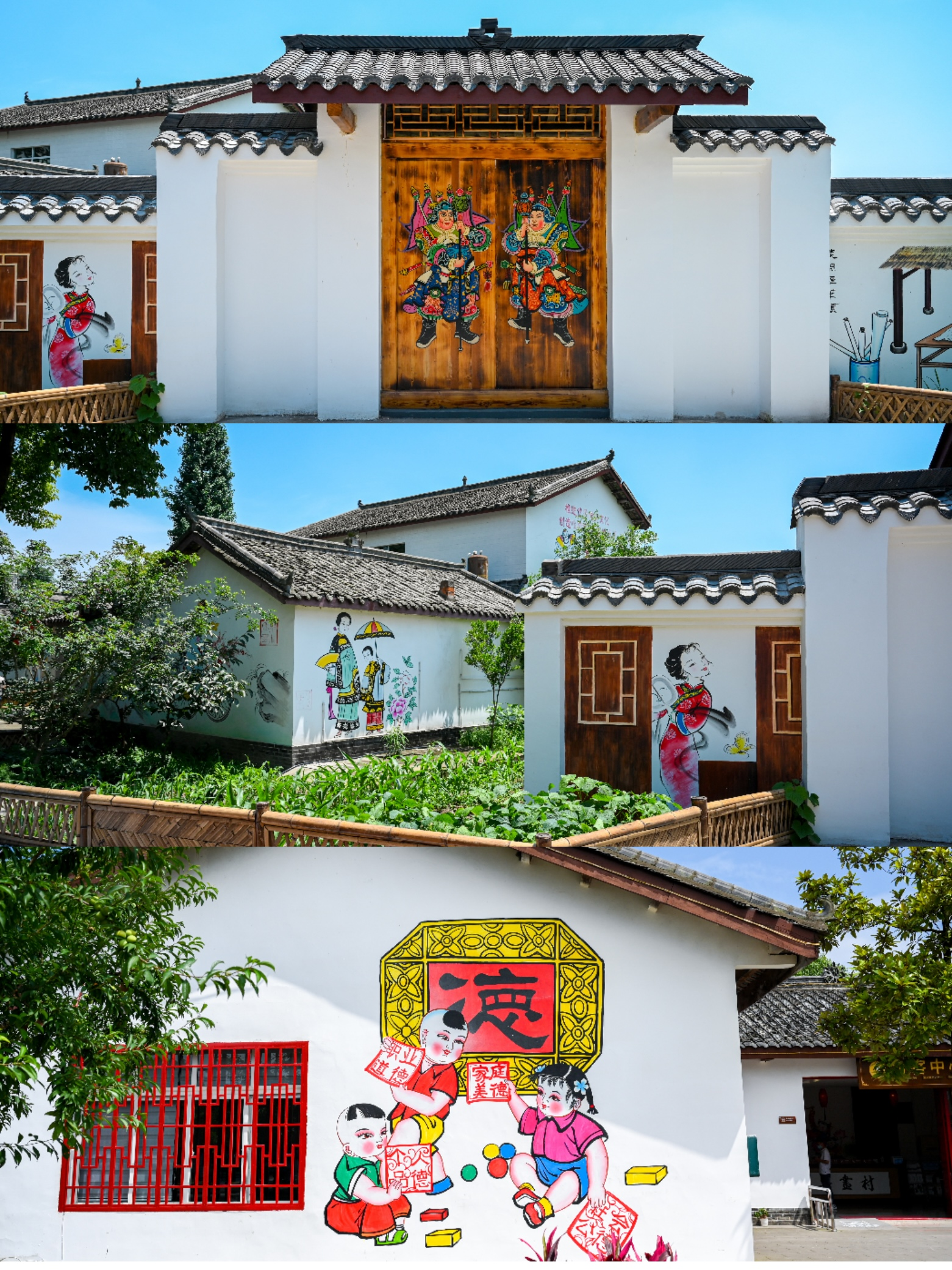 年画村整个村子都绘制着色彩鲜艳的年画,寓意也很吉祥,中午人比较少,我们到处拍照赏景都轻轻松松,拍了好多照片: