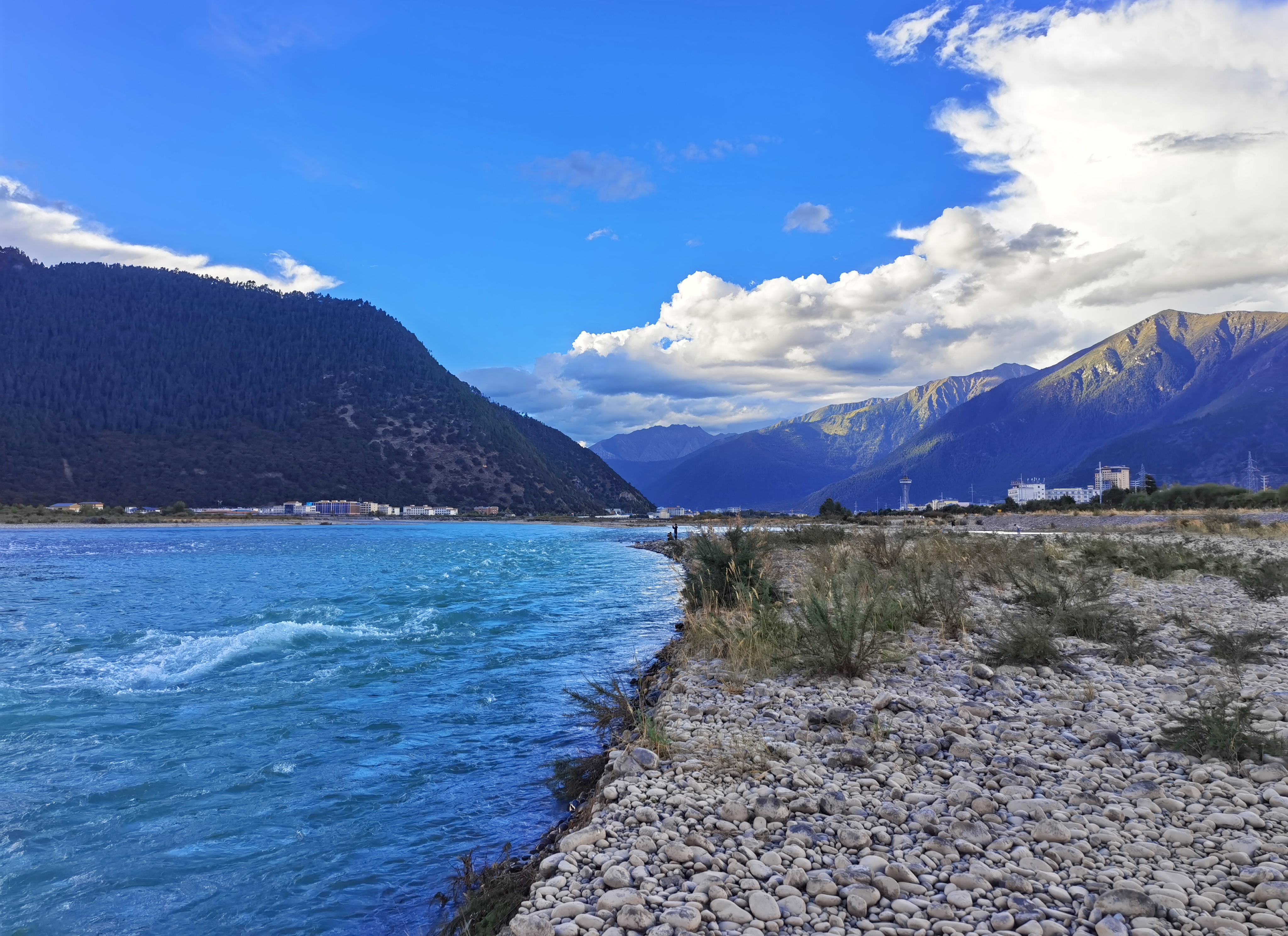 江滨公园,位于尼洋河畔,许多市民在这边搭帐篷露营,可以在步道散步,也可以在河滩边捡鹅卵石或者玩水,我们还很幸运的看到了彩虹。