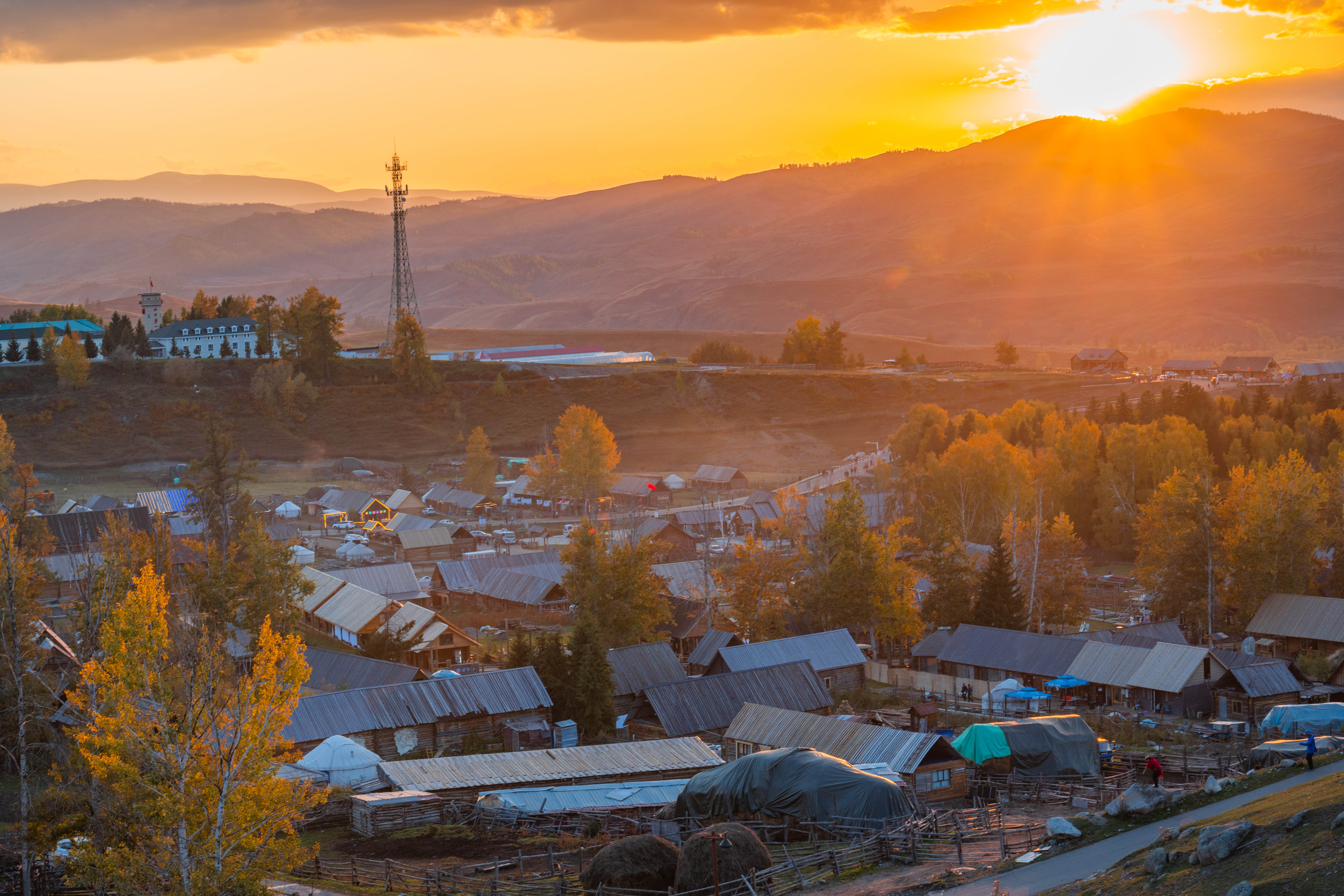 北疆的秋被国家地理评为中国秋色首位,在我心里这里的秋色就是天花板级别的,彩色的森林、古朴的村寨、绿色的河流,高耸的雪山,金黄的草地,神奇的晨雾,你能想到秋天有的这里都有。