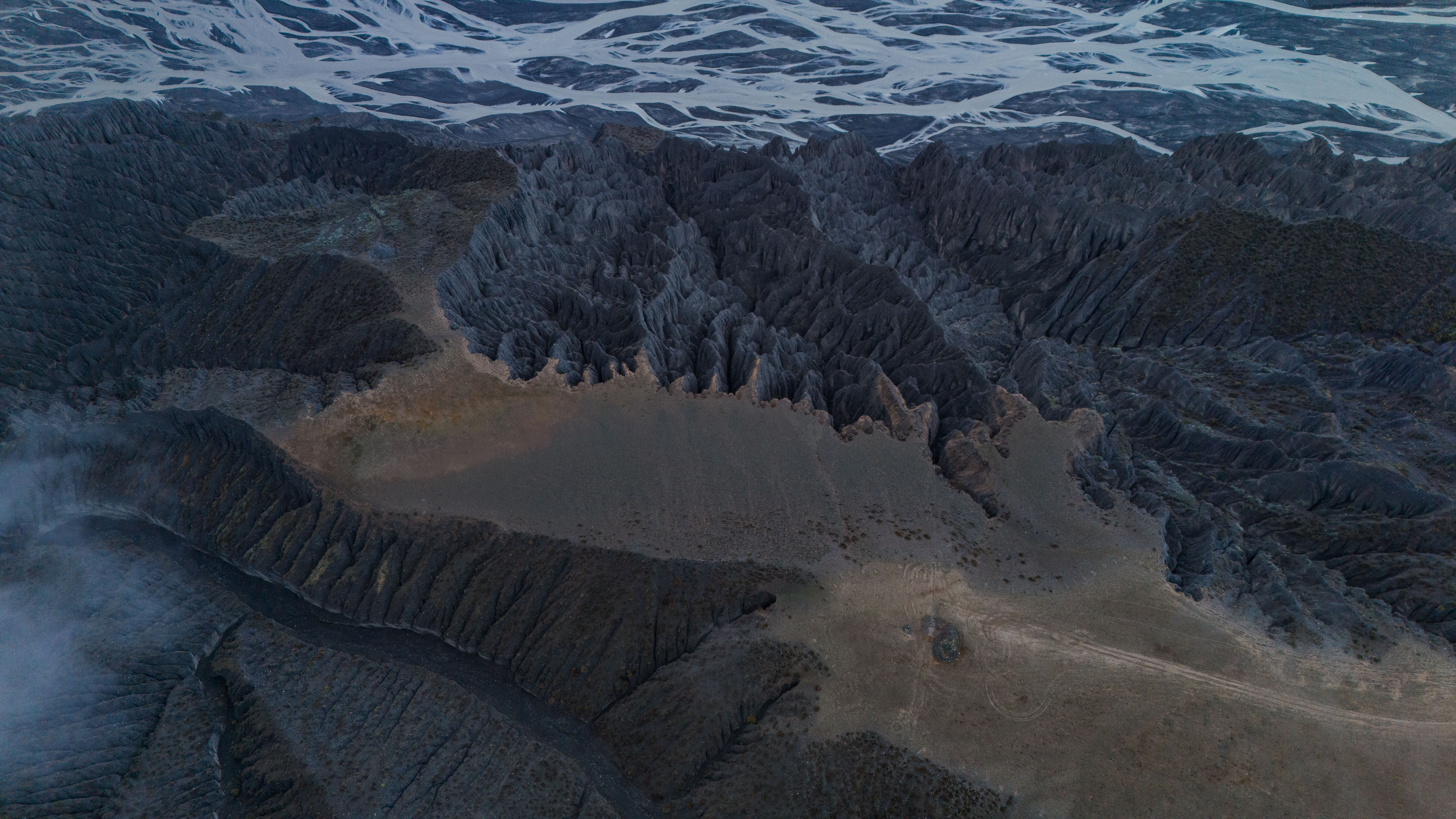 安集海大峡谷和独山子大峡谷都如同大自然的裂痕,安集海大峡谷封闭几年后现在没有对外开放但是可以进去,这里的悬崖峭壁和丹霞交织在一起,远处的草原和雪山清晰可见,峡谷下方是水流的痕迹,如血液般滋润着这片土地。独山子大峡谷是独库公路的起点,我从来没想过这里可以看得到晨雾,去的时候大雨滂沱,觉得今天的日出肯定没戏,但是日出时的浓雾散开,让我看到了干裂的大地和水汽共生的景象。