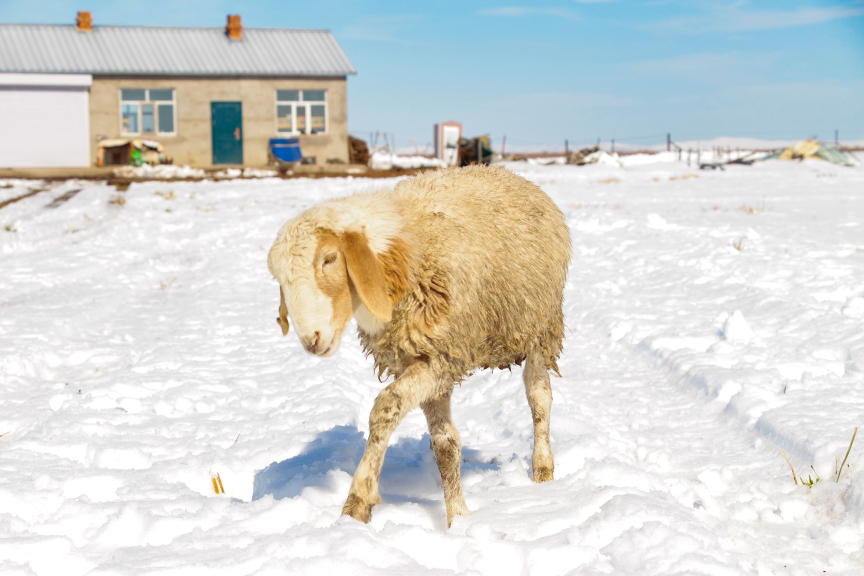 可爱的瑞士卷,远处被白雪覆盖的草原山坡是最美的背景