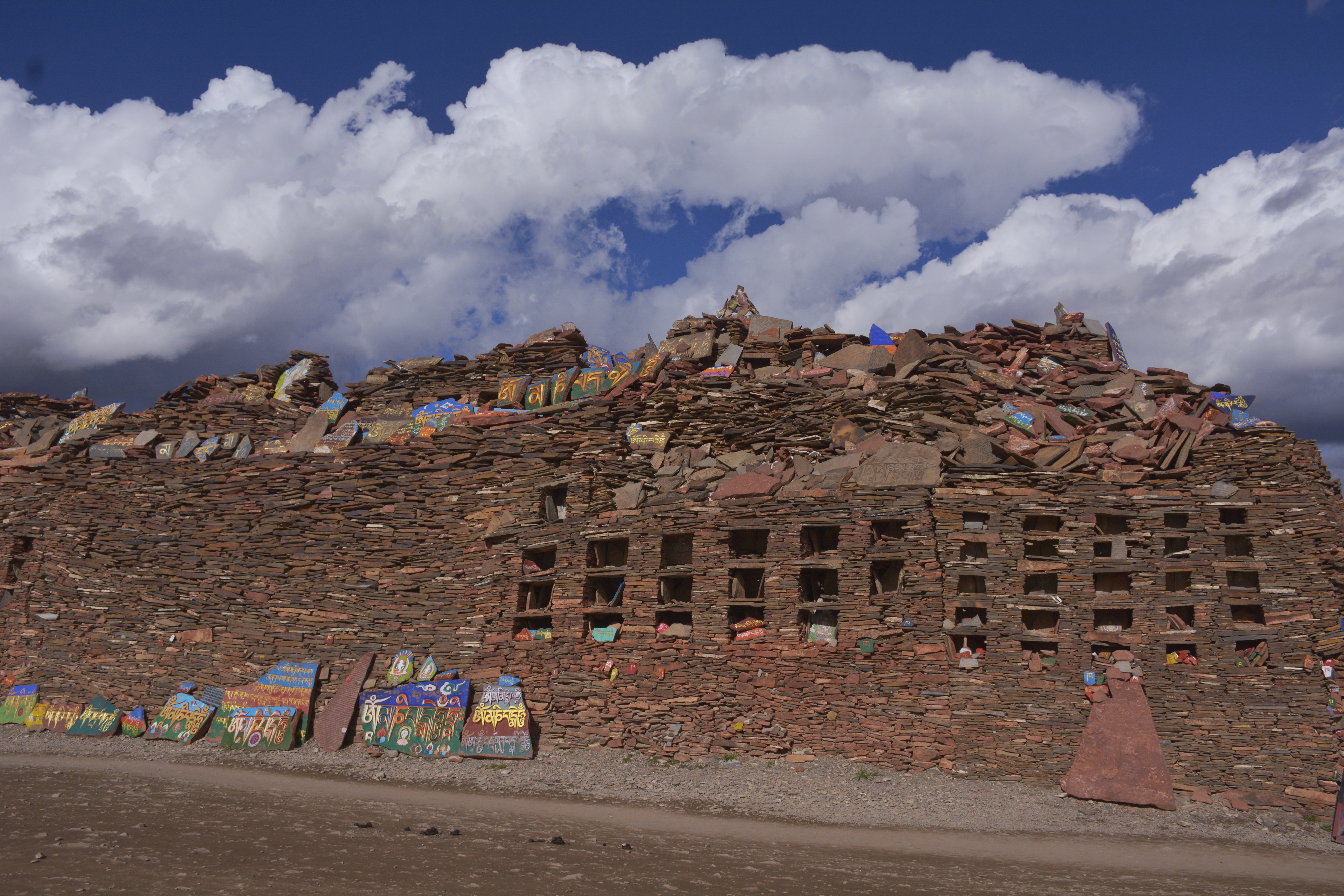 这是一处挂满经幡海拔约在4800米的垭口平台。登上拜山台,只见这里挂满了五彩经幡,风一吹动,经幡飞舞,神圣庄严。