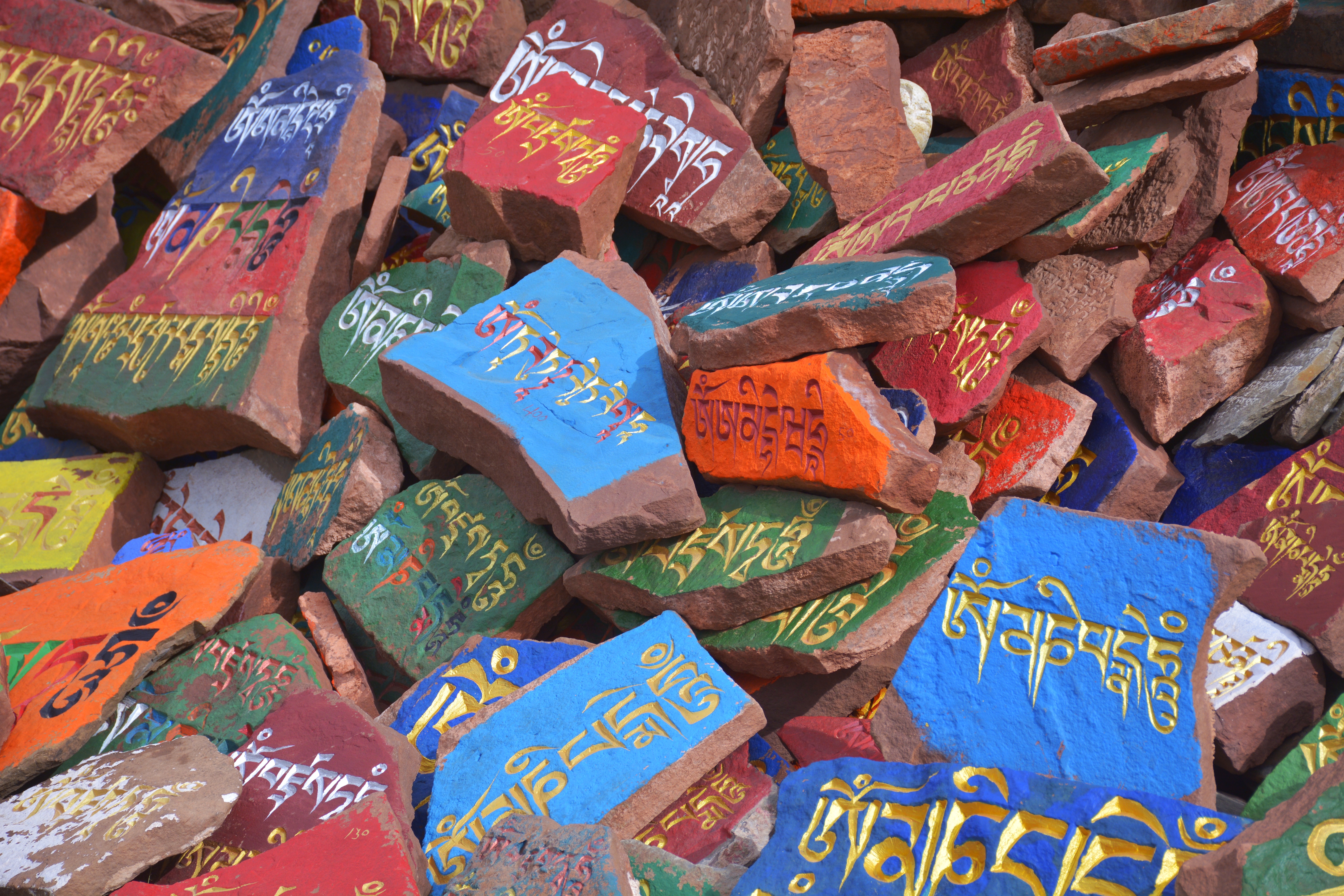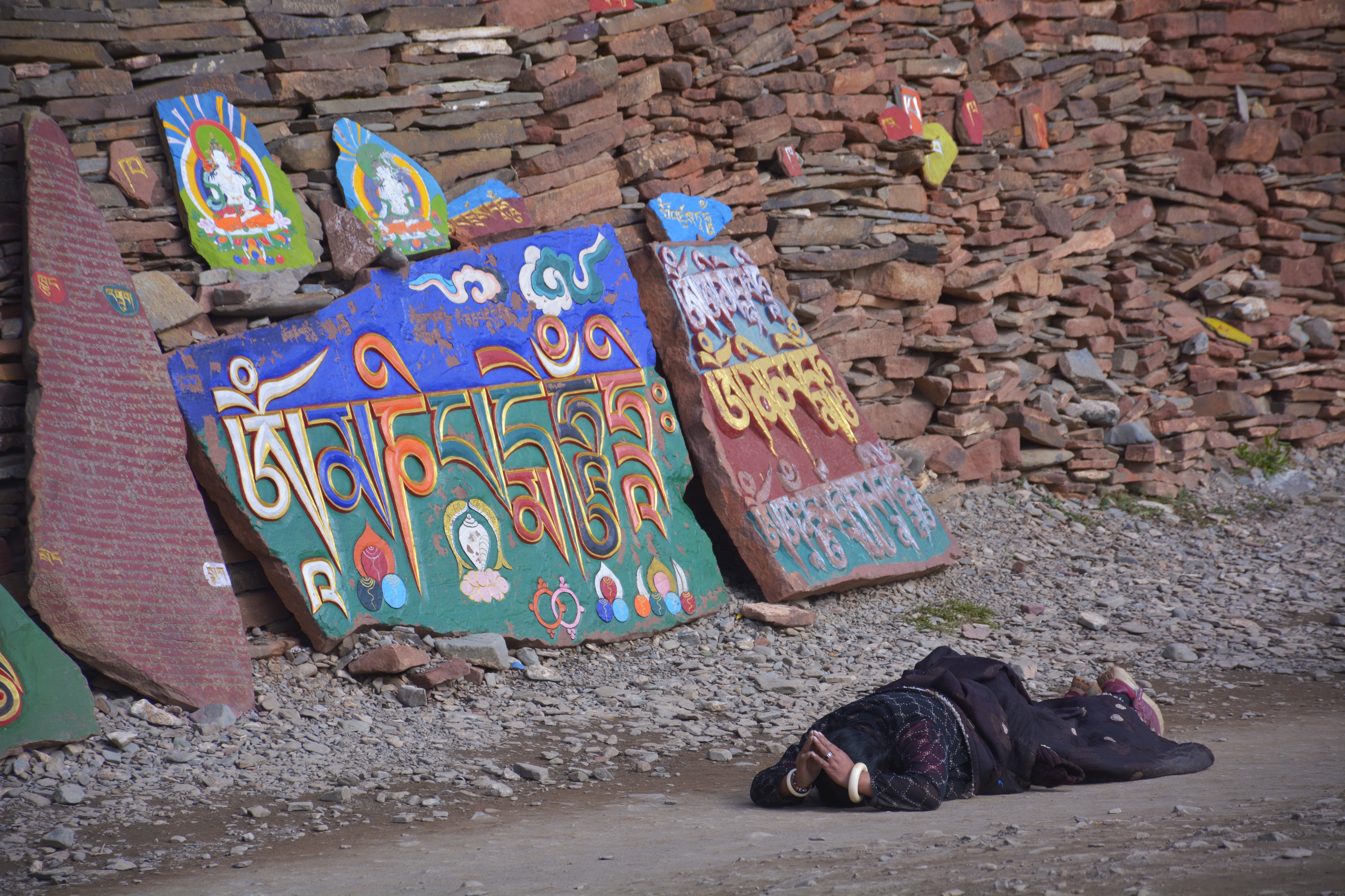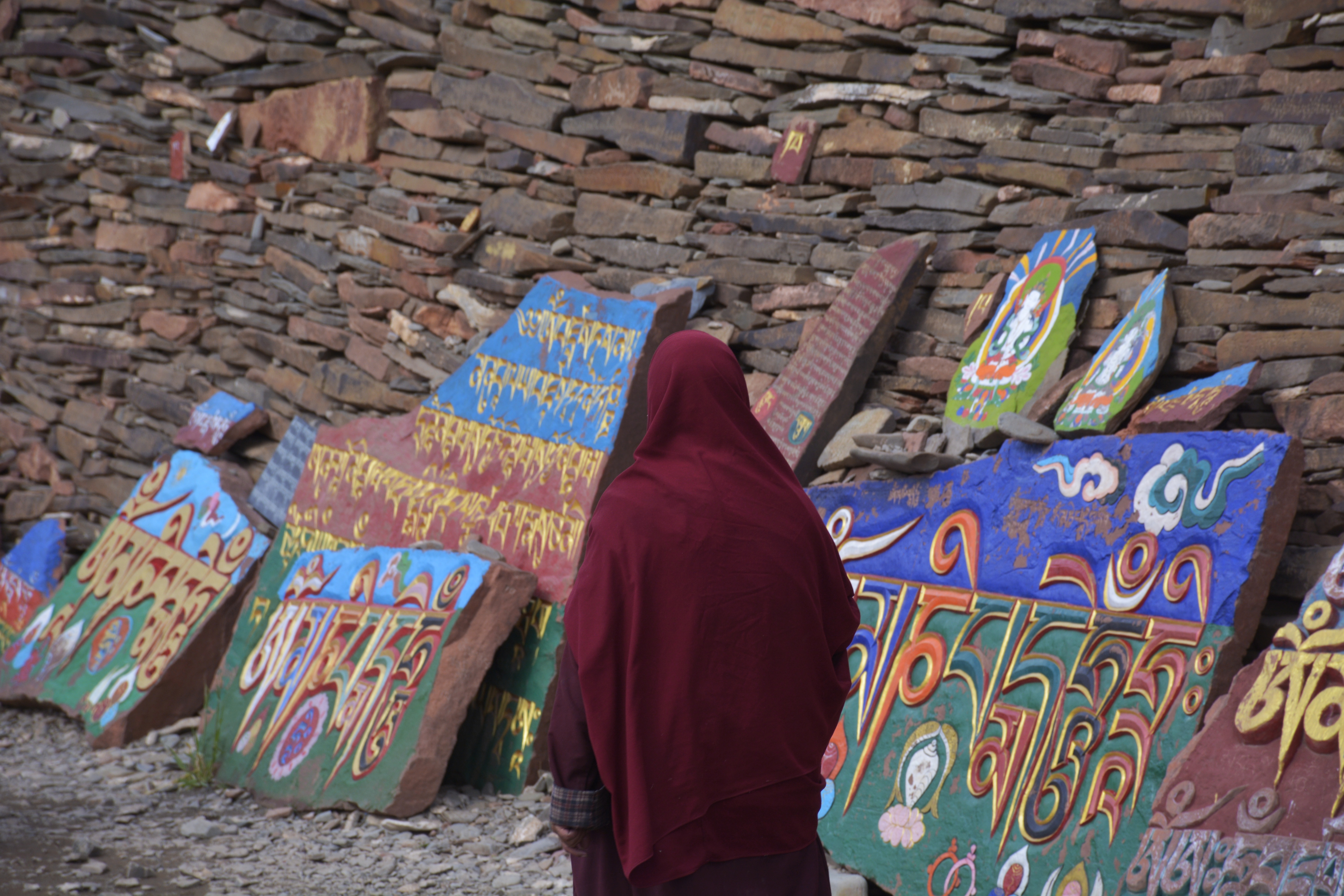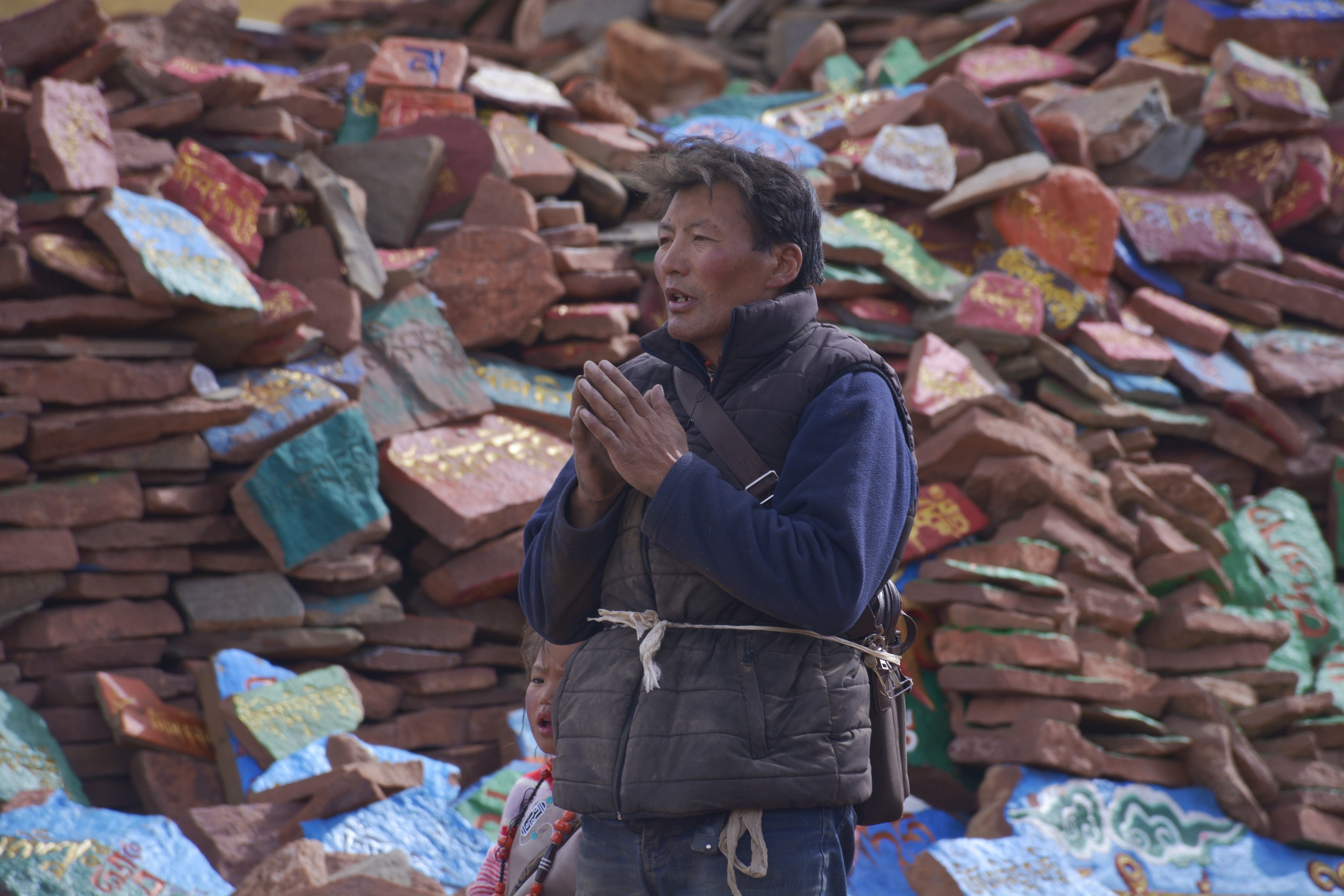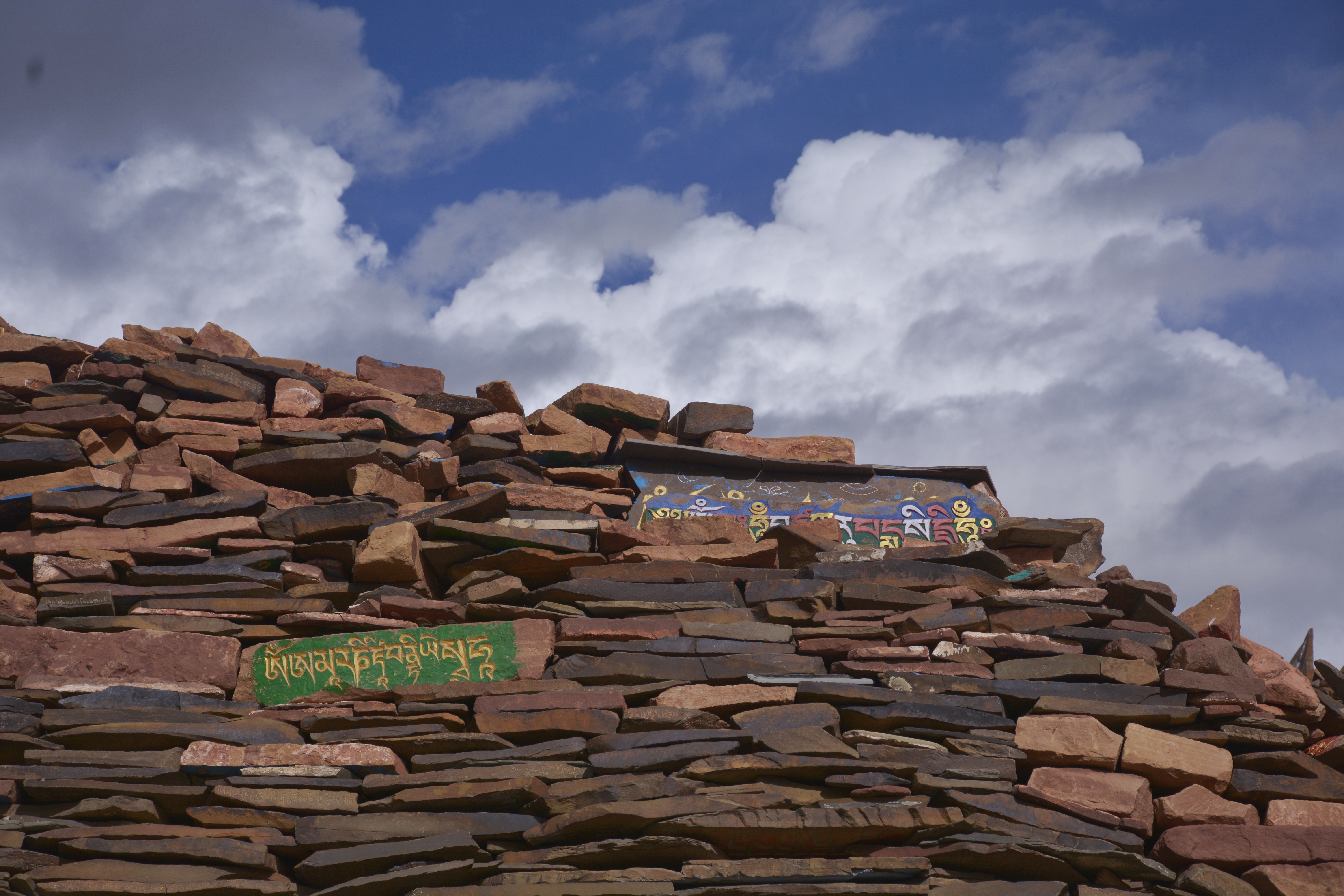 在附近停好车后,我们便决定步行围绕这座石经墙朝圣一周。听闻,石经墙全长1.7公里,高约3米,厚约2-3米,全部用玛尼石整齐堆砌。每一块玛尼石上都刻有“六字真言”或《甘珠尔》、《丹珠尔》中的经文。