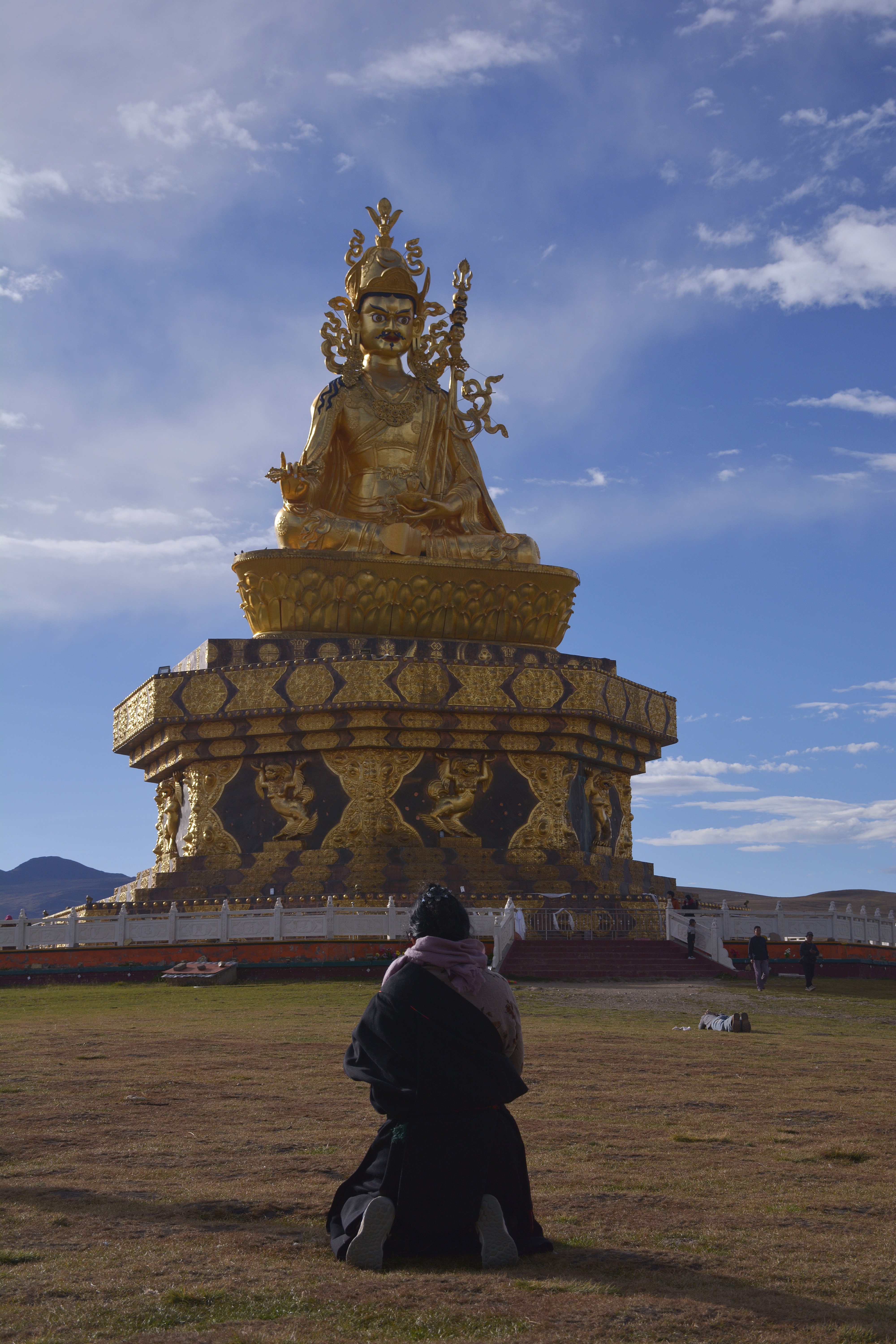 走进亚青寺,首先映入眼帘的便是其大经塔与转经长廊。无数藏民和僧众围绕着经塔转经诵佛,以求身体健康与来世福报。在大经塔的前方不远处,屹立着一座巨大的“莲花生大师”雕像,它是红教宁玛派的开山祖师。