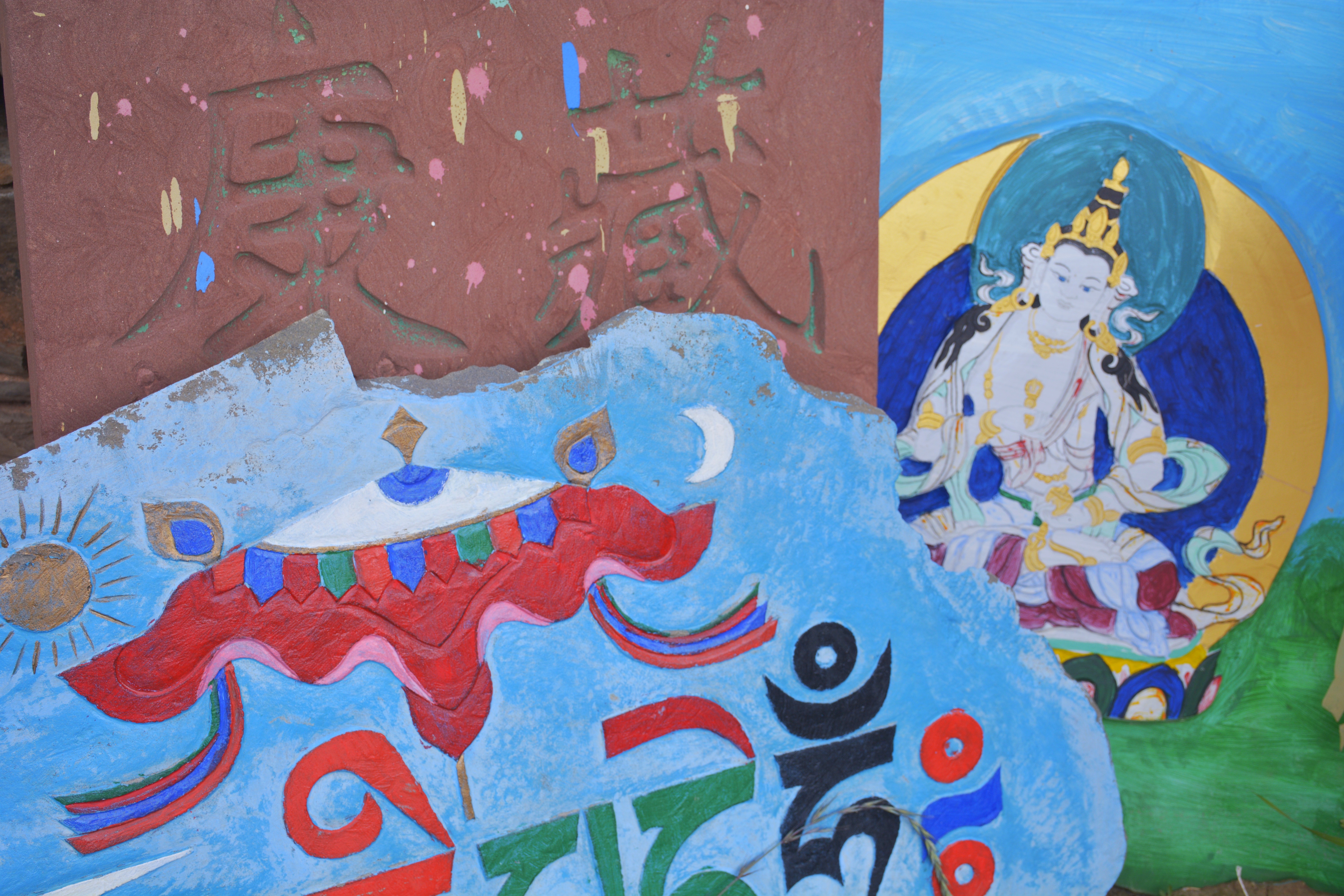 在石经墙中还留有一些小窗,通常是摆放佛像的地方。石经墙中有108座佛塔,其上方飘扬着五色经幡,传达着信徒们的祈愿。