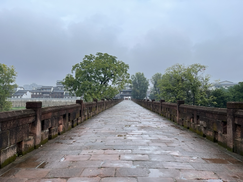 云龙桥位于江西省赣州市瑞金市象湖镇,南北横跨绵江河。云龙桥宋代为浮桥,名“绵福”;明嘉靖十九年(1540年)改作石墩木梁桥,因“桥界青云坊而跨龙池”,故更名“云龙桥”;清康熙三十六年 (1697年)改成十二墩十一孔红条石拱桥;1988年对多孔坍塌的瓮门按原貌修复,修复后的云龙桥桥长 177.52米,宽5米,桥墩上下游有分水尖。北端桥头建座二层桥楼,桥楼第二层嵌装时任国家副主席**亲笔题写的“瑞金云龙桥”五个铜字;南端桥头建一座牌坊,四柱三间四层。云龙桥是古瑞金沟通绵江南北主要交通要道,又是瑞金通往福建的枢纽通道。苏区时期,毛泽东、**、**、**、**等共和国开国元勋都曾频繁过往云龙桥。