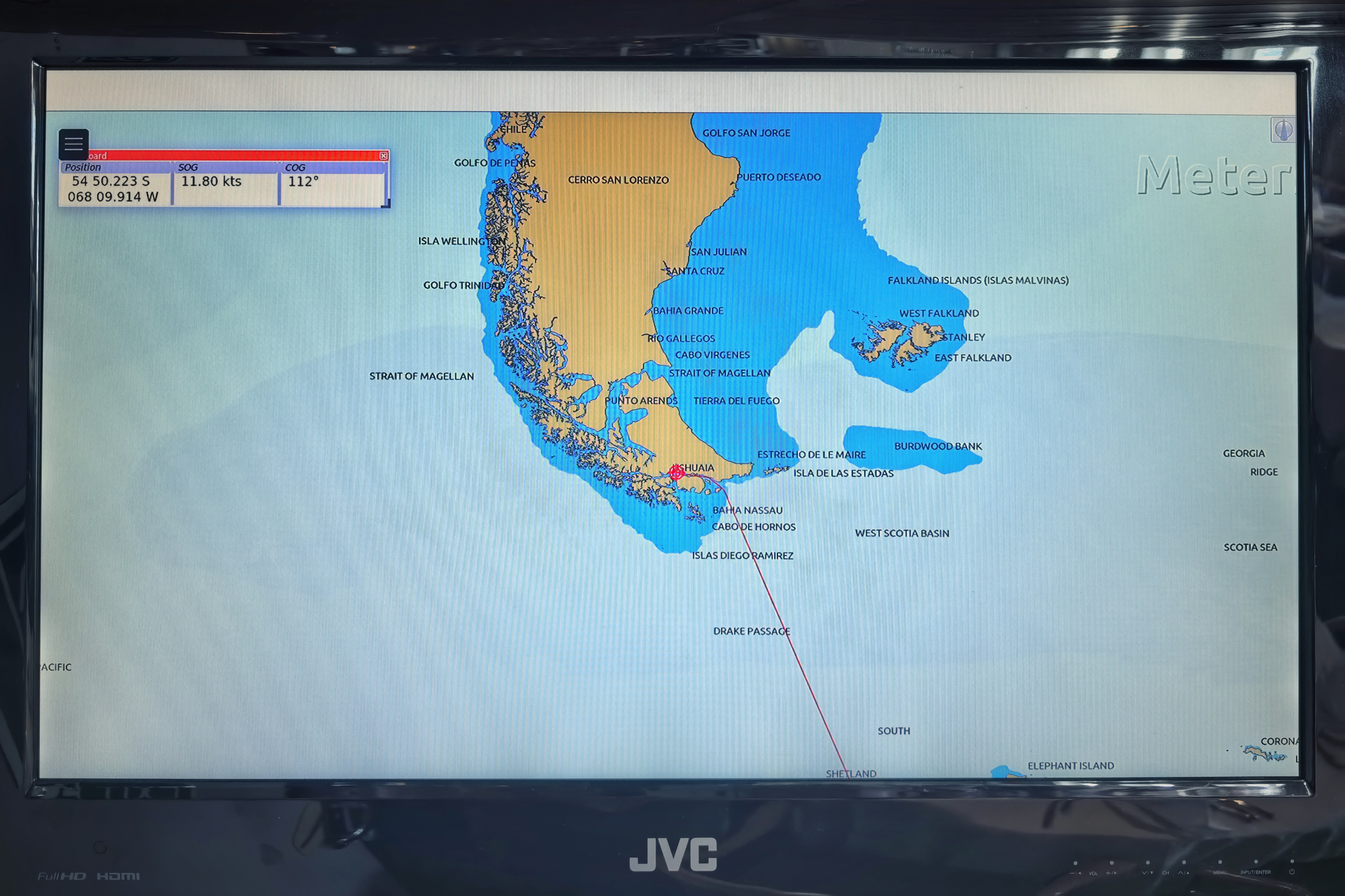 当天沿着杰拉许海峡继续南下,穿越“勒莫尔水道”,抵达本行程最南点。