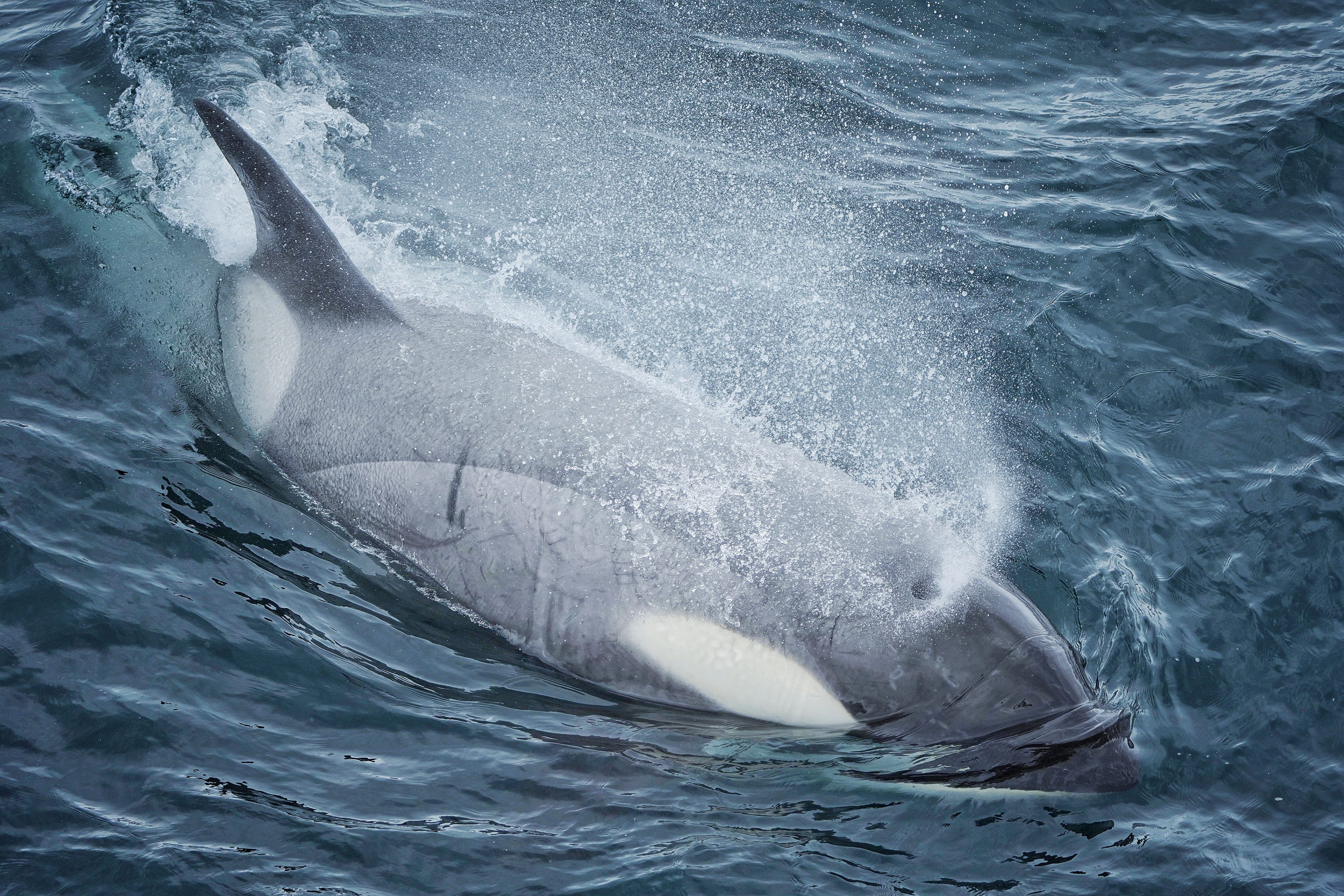 一大群虎鲸在邮轮边玩耍,船长关掉了引擎,让我们在邮轮的甲板上尽享这一场难得的虎鲸盛宴~