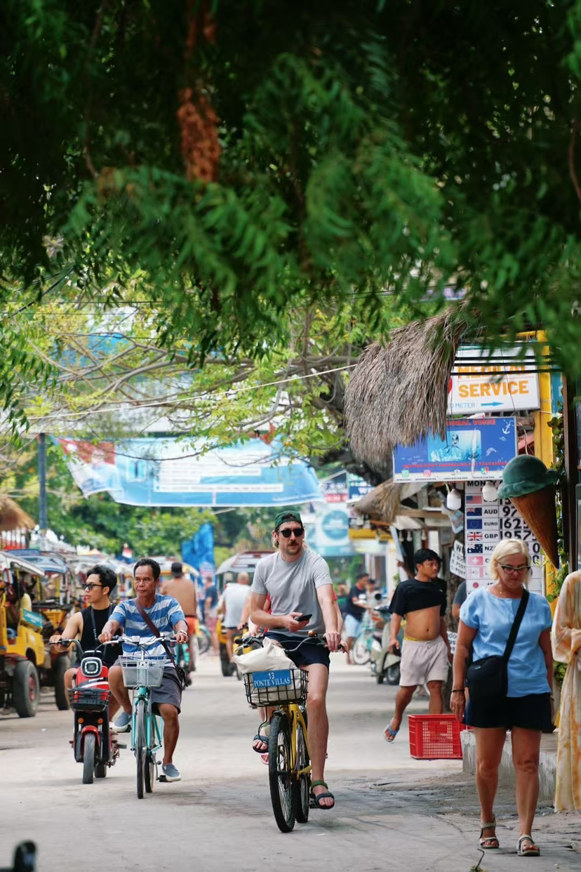早起沿着海岸线骑行,穿越郁郁葱葱的椰子树丛,沿途的小路两旁是五颜六色的小店、餐馆以及海滨度假村。岛上的道路并不繁忙,几乎没有汽车,唯一的交通工具就是自行车和马车,这让骑行变得更加宁静而愉悦。