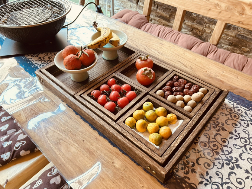 下午1点半,大家都已下山,继续驱车前往德清新市古镇,宛如展开一幅生动的江南水墨画卷,小桥流水人家,古镇的每一条街巷满是岁月的沧桑,青石板路上,每一步都踏出了历史的回响。街头巷尾,千年的丝绸文化在这里得以传承,每一匹绸缎都诉说着古老的故事。转角处的腊梅悄然绽放,暗香浮动,那一树树梅花,在寒风中傲立,仿佛在诉说着生命的坚韧与美好,给这初春的古镇增添了几分温婉与生机。新春将至,节日的气氛弥漫在每一个角落,张灯结彩,喜庆洋洋,热闹欢腾。围炉煮茶,是冬日里最温馨的享受。在河岸一隅,游人们三五围坐,品茶论道,分享着可口味美的小食,那热气腾腾的茶水,伴随着茶香,温暖着身心。上午运动一番,下午更有胃口大饱口福。谈及新市古镇的美食,不得不提那些百年传承的经典民俗小吃:元松羊肉面,酱制羊肉,汤浓肉烂,香气扑鼻,每一口都是对味蕾的极致诱惑,让人难以忘怀;广福楼面馆的手工面,筋道十足,搭配着秘制的酱料,让人回味无穷。还有当地非遗特色-梅花糕、茶糕、松糕,甜蜜软糯,每一口都像是品尝着江南的甜蜜与柔情。更不用说街巷间随处可见的糖葫芦、烧饼和油墩子,物美价廉,每一口都在唤醒童年的记忆。