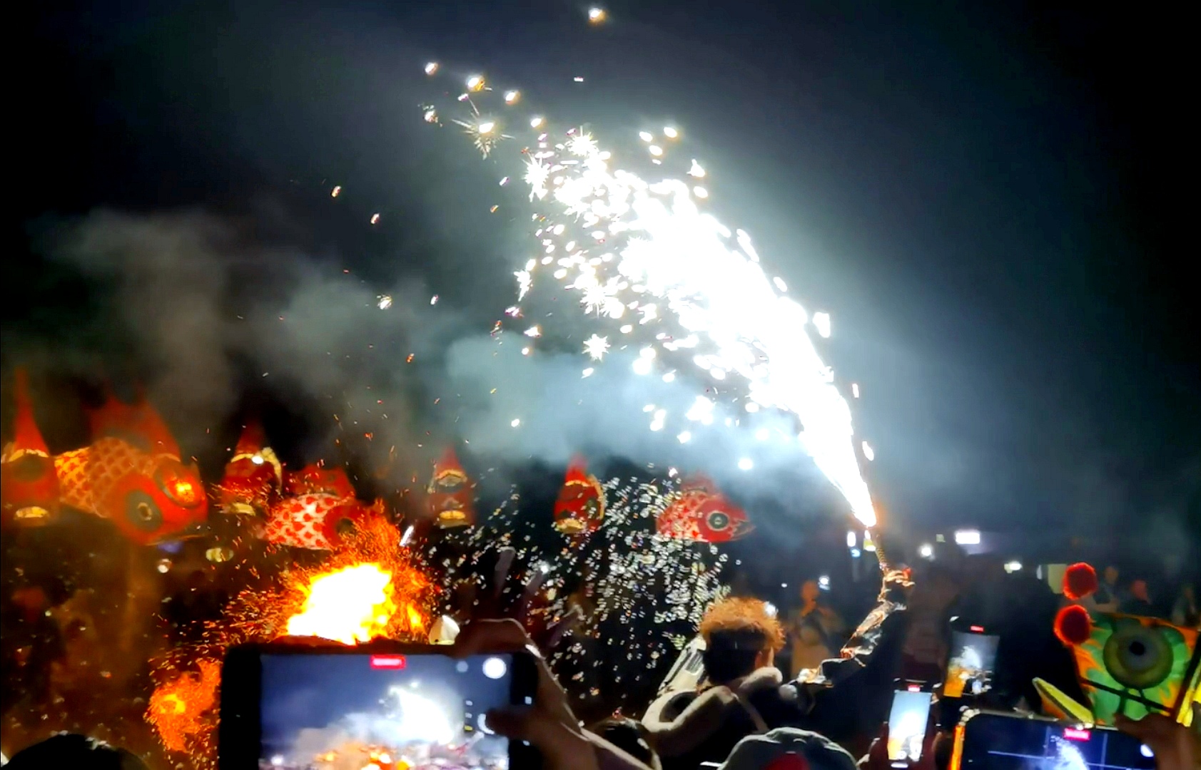 夜幕降临,西溪南村的鱼灯点亮了夜空。鱼灯起源于明清时期,是徽州人祈求年年有余的象征。五彩斑斓的鱼灯在村民手中游动,与璀璨的烟花交相辉映。锣鼓声中,队员们也加入了游灯队伍,欢声笑语回荡在古老的街巷,浓浓的年味扑面而来。鱼灯游过之处,鞭炮声声,烟花绽放,整个村庄沉浸在喜庆的氛围中。我们仿佛穿越回了百年前的徽州,感受着传统文化的魅力。鱼灯的制作工艺精湛,形态各异,有的如鲤鱼跃龙门,有的如金鱼戏水,美轮美奂,令人目不暇接。