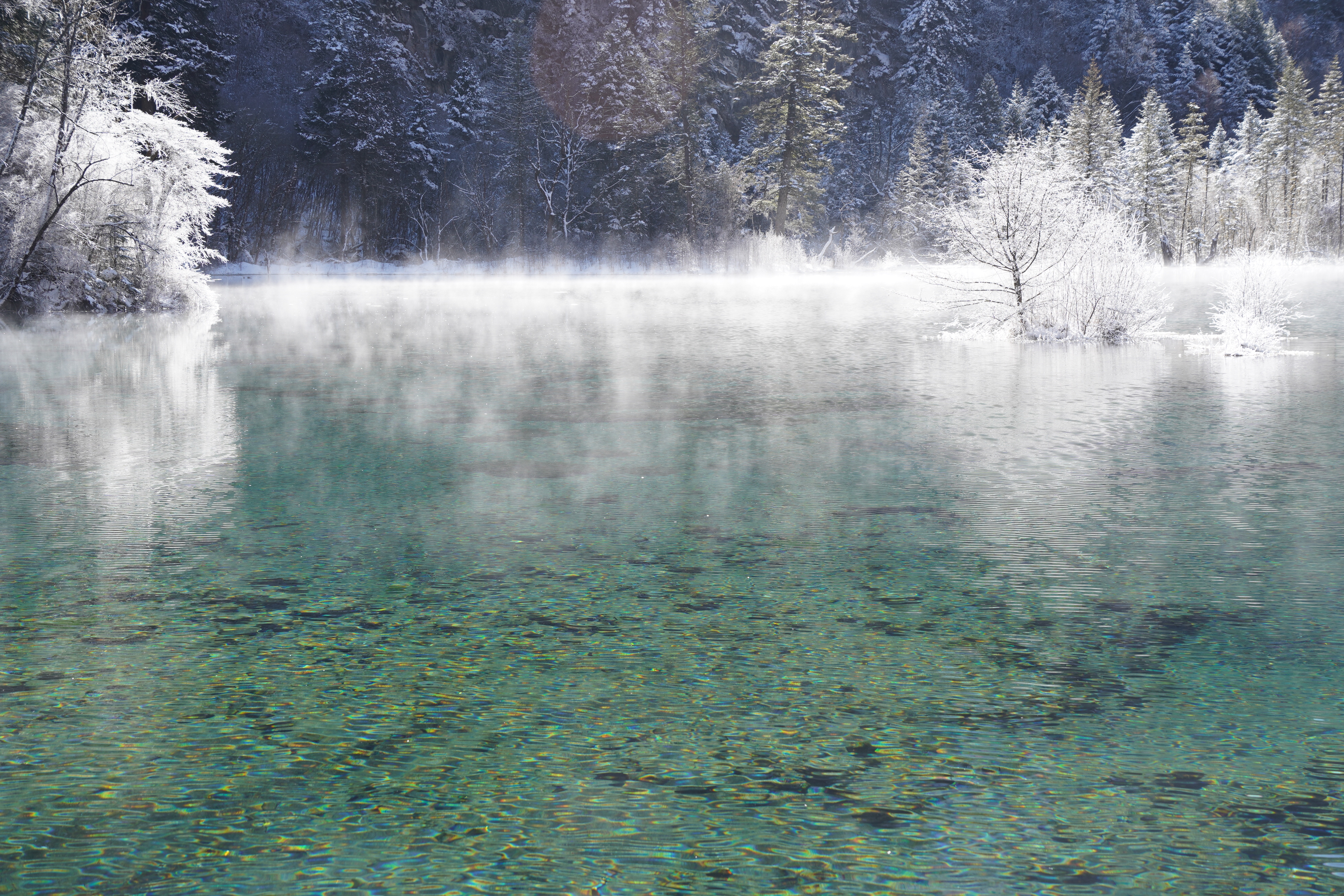 进入九寨沟,首先映入眼帘的是那五彩斑斓的海子,湖水清澈见底,呈现出蓝、绿、黄等多种颜色交织在一起的美丽景象。在阳光的照射下,湖面仿佛一块巨大的调色盘,美不胜收。其中,五花海被誉为九寨沟的一绝,湖水中的颜色层次丰富,仿佛是大自然的杰作。
