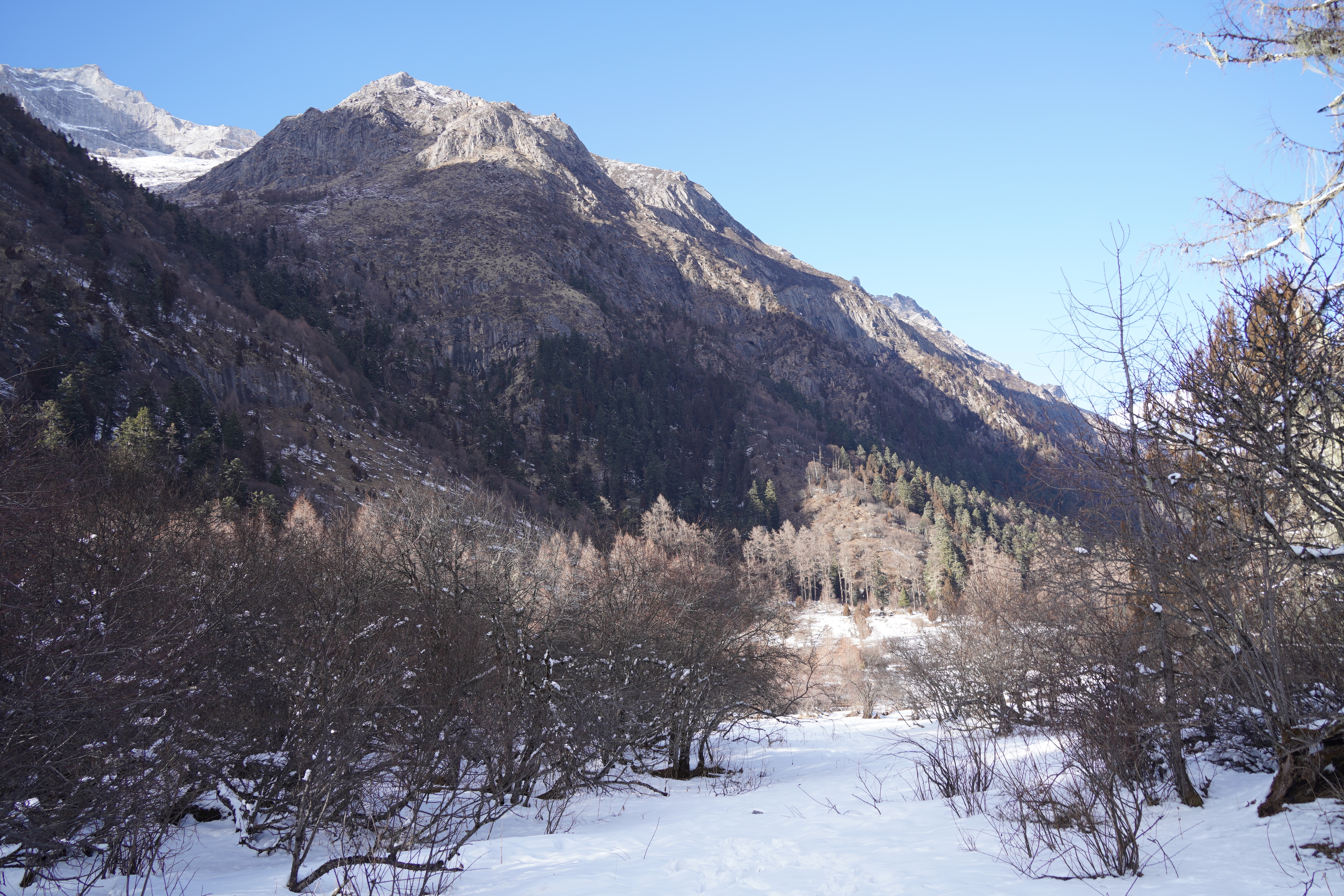特点:现代山地冰川,山顶终年积雪,气势宏伟,雪峰错落有致。景区内有现代山地冰川、瀑布、湖泊、原始森林、成片的杜鹃林和星罗棋布的草甸,野生动物可视率极高。