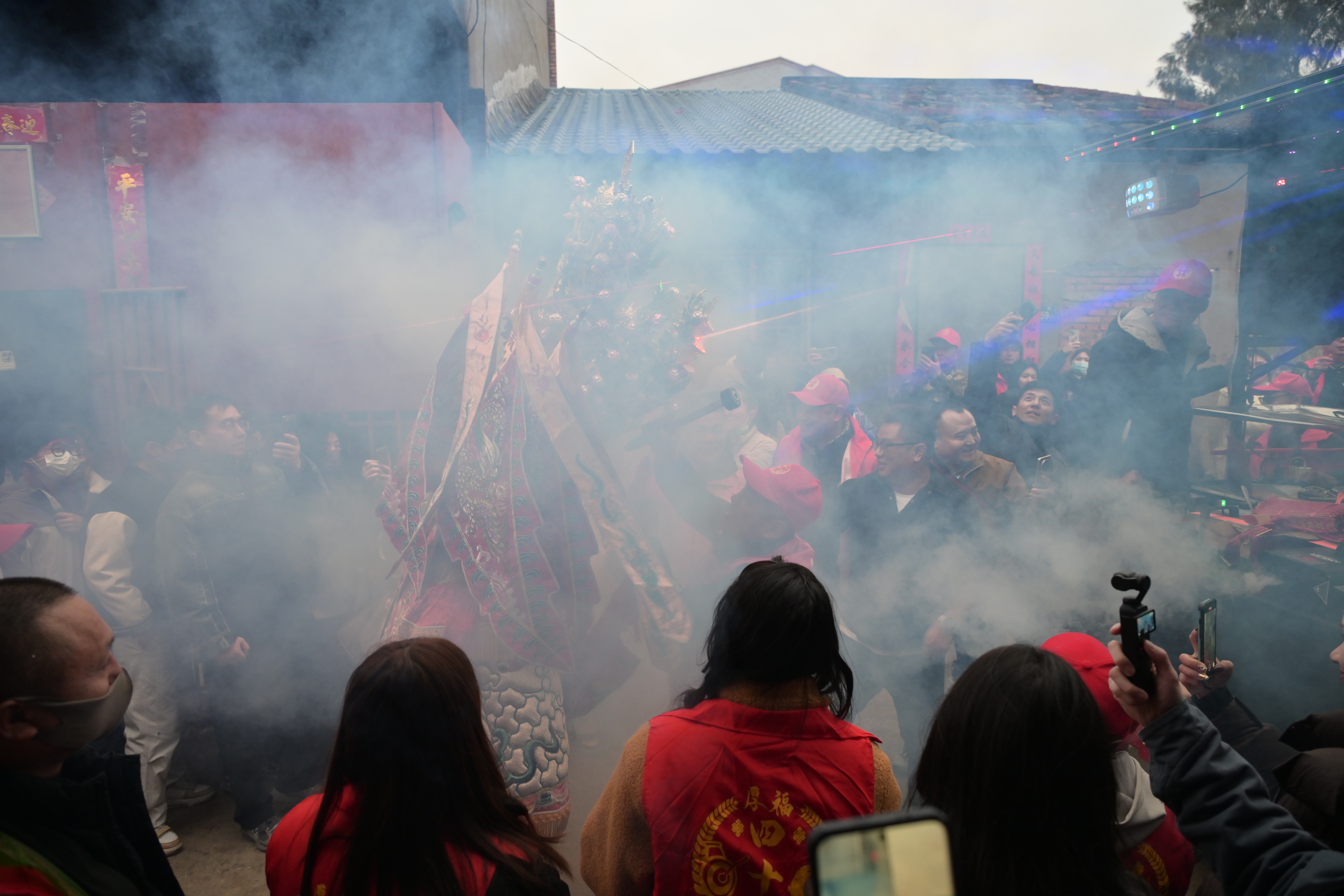 到了正月初七总元宵活动,这里会举行梅妃金身巡游活动,我们到莆田的时间较晚,但刚好赶上了冲宫。只见抬着神像的队伍清空了前面的空间,吉时一到众人抬着神像一路飞奔冲宫。按当地人的习俗,冲宫速度越快,这一年的运气就会越好。