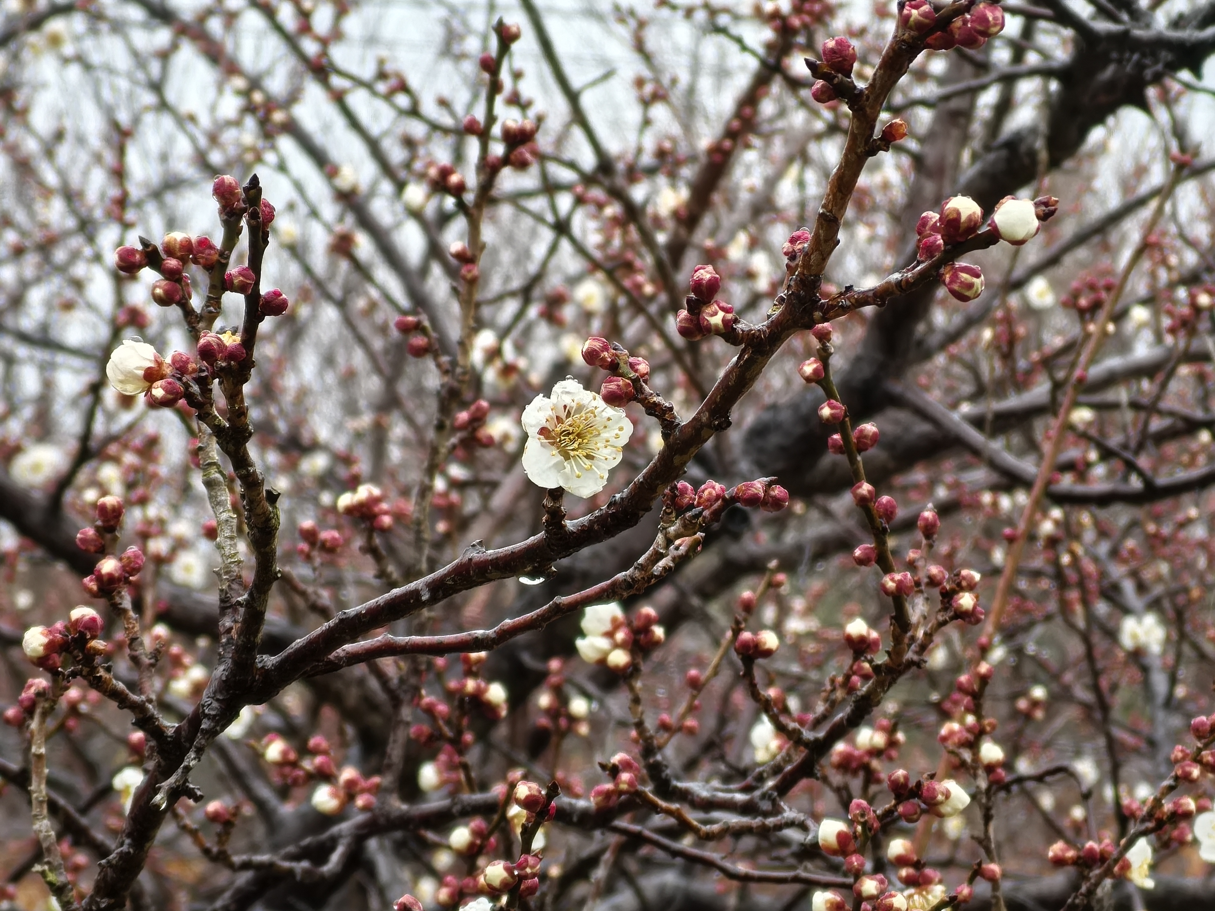 能看到梅花枝下的水滴吗?春雨贵如油。