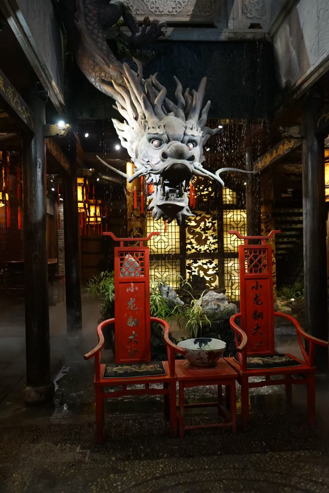 第一次来的时候为成都的火锅文化震撼,不同于其他地区,火锅仅仅是吃火锅。成都人也很注重享受火锅,在装修和环境这方面毫不吝啬。我在宽窄巷子内随意路过的一家火锅店,仅是门口都能让人驻足观望和惊叹。而后几天专程去的蜀大侠侠客印象店,说是在世外桃源品火锅也不为过,甚至还有专属的门派包厢,视听和味觉享受一个都不落下。
