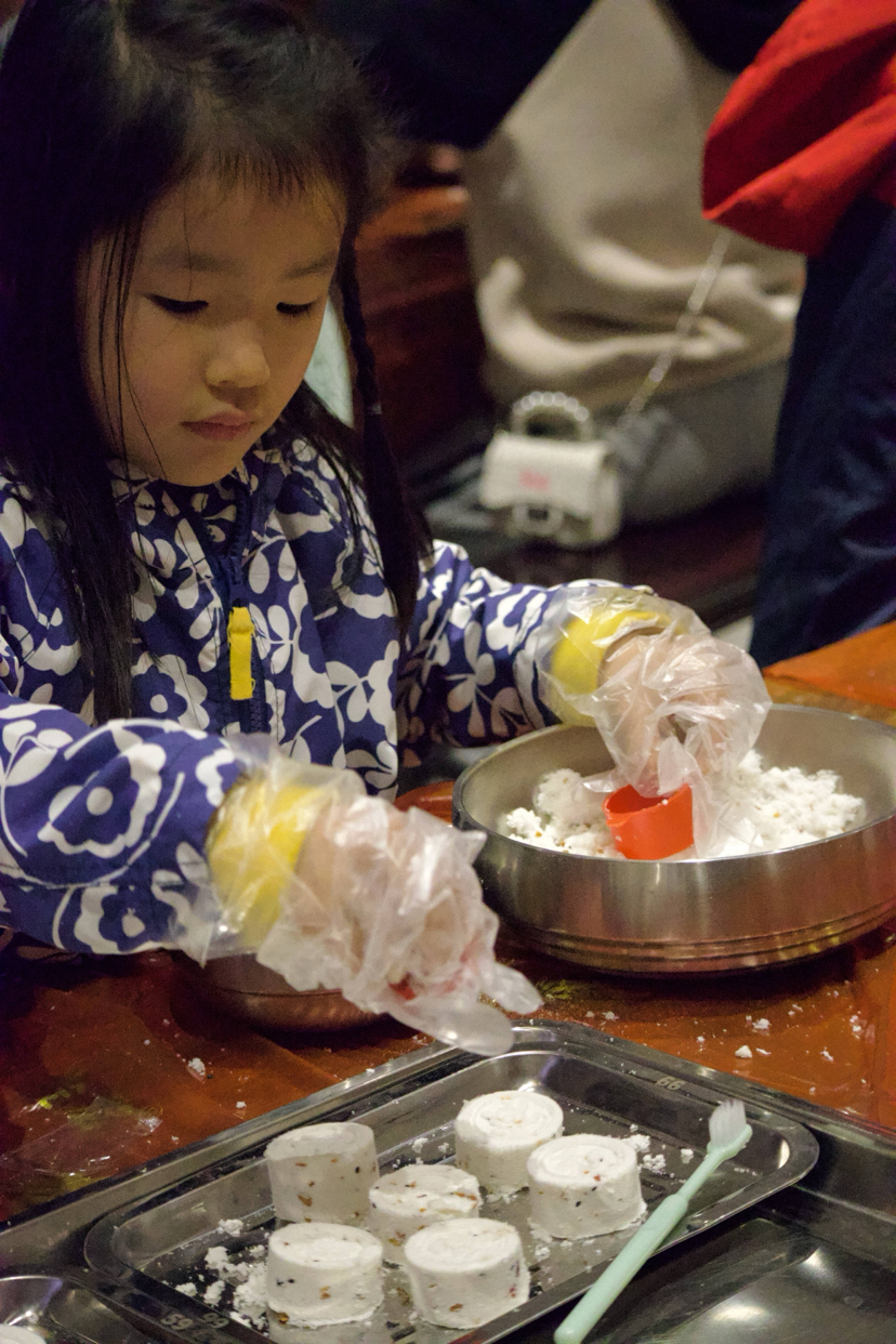 清晨的妈妈们和天才们蹬车前往此行第一站:蟳埔村,在阿嬷们的精心打扮下,所有人头戴簪花围、换上各种制式汉服!以及传统的蟳埔渔女服饰!午后在古早味来旺工坊亲手揉制麦芽红糕仔,甜香混着麦芽焦香,一口咬下,是童年的味道。傍晚的梧林古村,红砖厝与南洋楼交错,夕阳为燕尾脊镀上金边,仿佛时光在此停驻。