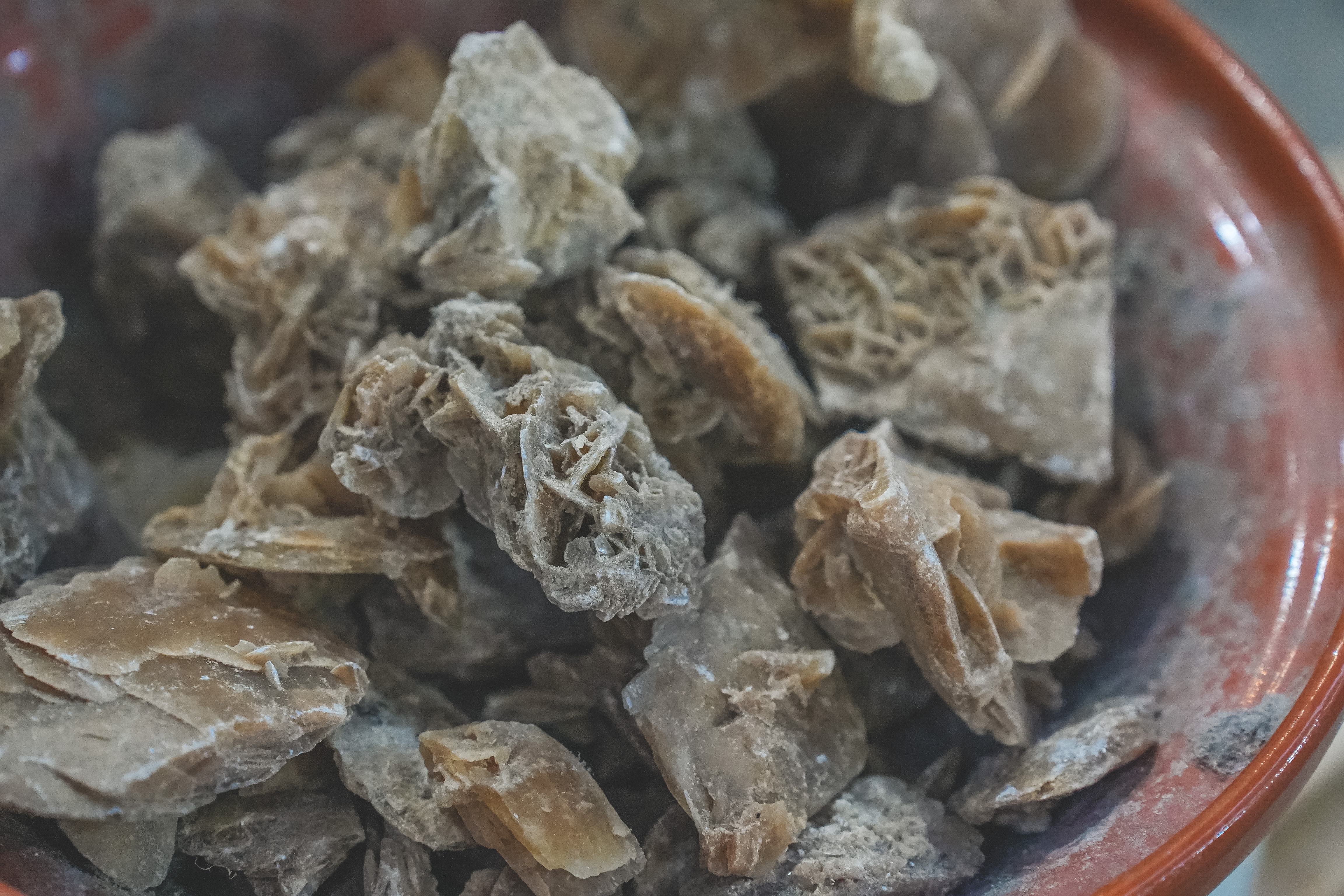 沙漠玫瑰:沙漠玫瑰其实是一种天然形成的矿物结晶,形状像玫瑰花瓣