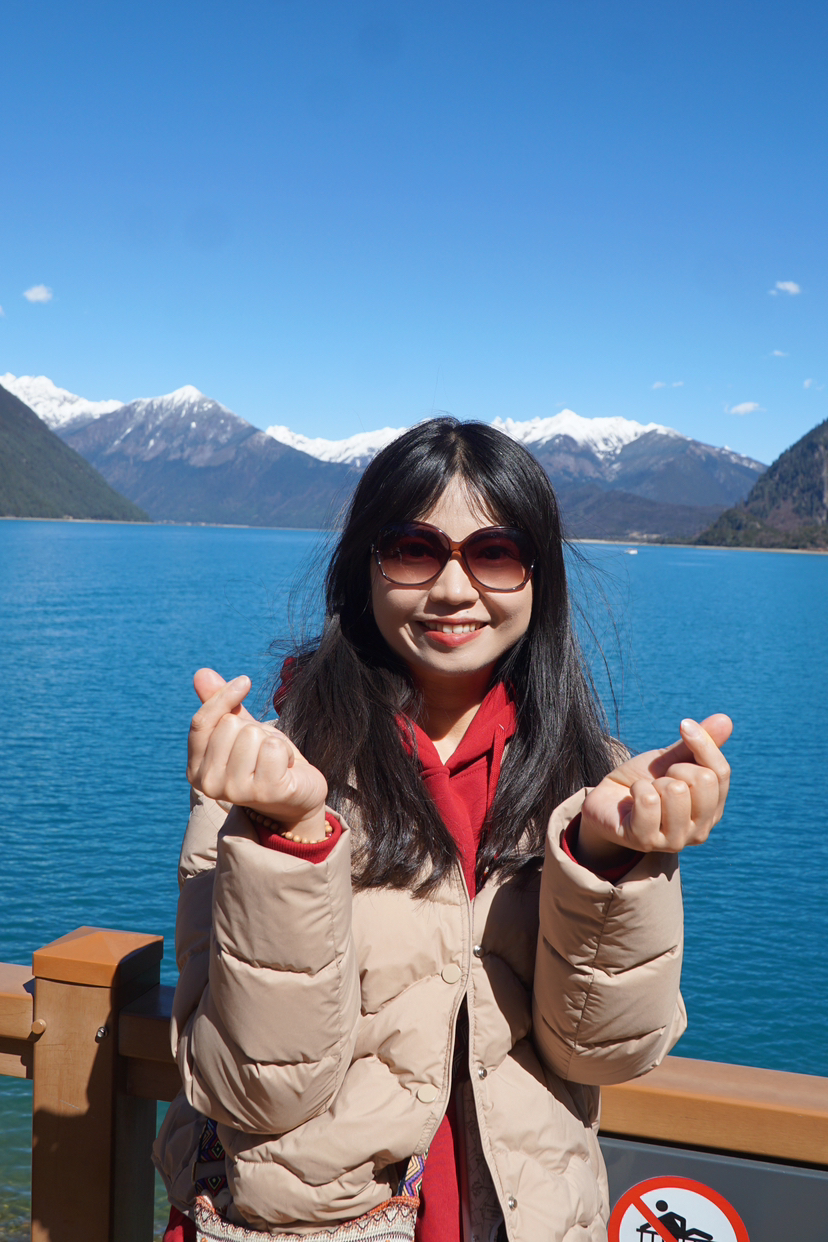第二天,我们前往巴松错。车窗外,景色不断变换,远处的雪山在阳光的照耀下闪闪发光。当巴松错映入眼帘时,所有人都被它的美惊艳到了。湖水清澈碧绿,四周群山环抱,远处的雪山倒映在湖水中,宛如一幅绝美的山水画卷。我们沿着湖边漫步,呼吸着清新的空气,感受着大自然的宁静与美好。同行的大哥大姐们纷纷拿出相机,记录下这美好的瞬间,大家互相帮忙拍照,分享着此刻的喜悦。