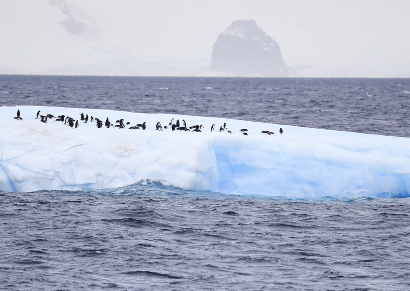 巨型冰山上,企鹅们正在举办大型聚会。团友放大细看了图片,发现有帽带、阿德利等各种企鹅出没,原来,企鹅界也是讲究团结合作的。