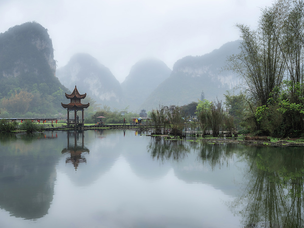 渠洋湖是高山湖泊,水面海拔700米,喀斯特山峰矗立在湖面,秀气而宁静,如世外桃源。这里是避暑和休闲的绝佳地点。