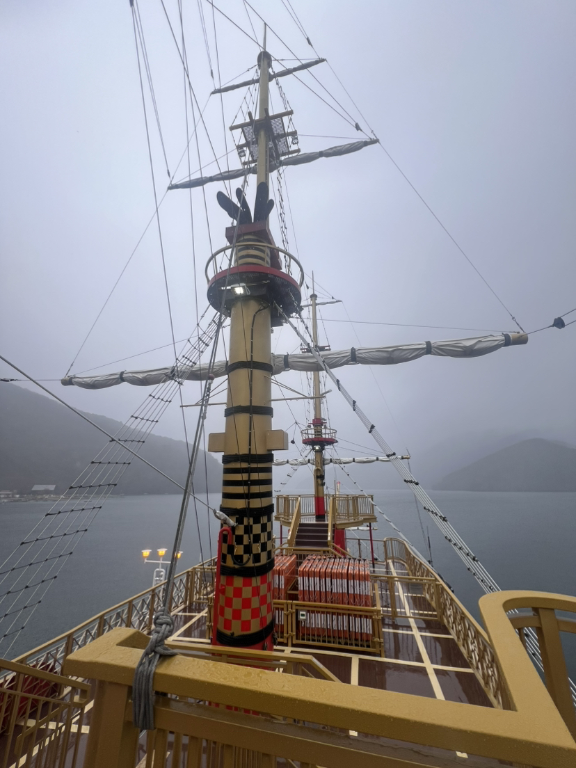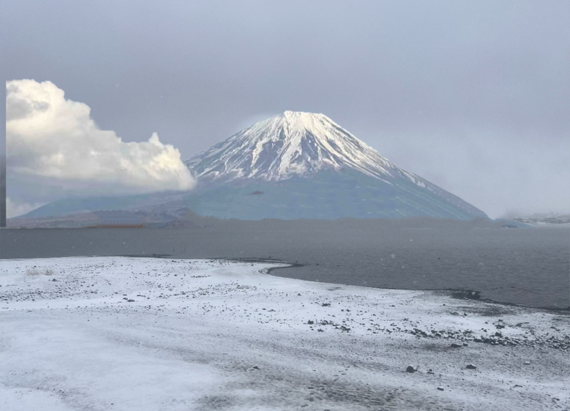 也许这就是愚人节吧,富士山周边开始下了鹅毛大雪,这大雪的程度堪比草原,富士山肯定是看不见了,王导告知行程改为富士山博物馆,弥补下看不见富士山的遗憾吧。下午前往箱根坐游船,天气原因同样看不见一点,于是我在河口湖对着富士山的方向,PS了一副,就当看见了吧。晚间,落脚横滨,稍微在这个产业城市walk了下,但雨是真的大。