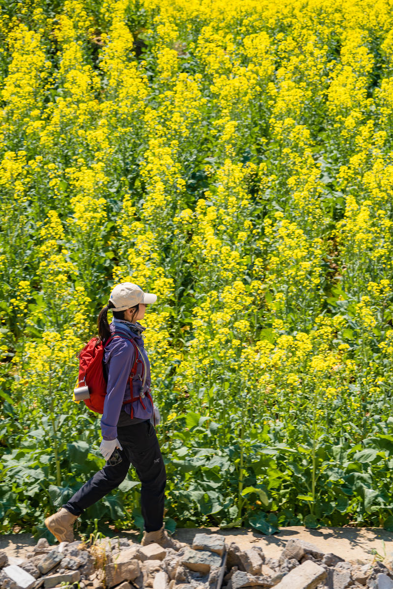 沿着蜿蜒的山路前行,开始一段花海徒步之旅。一路上,不仅有金黄的油菜花相伴,还有粉嫩的桃花、洁白的梨花点缀其间,红的、粉的、白的花朵与金黄的油菜花相互映衬,仿佛大自然打翻了调色盘,色彩斑斓,美不胜收。